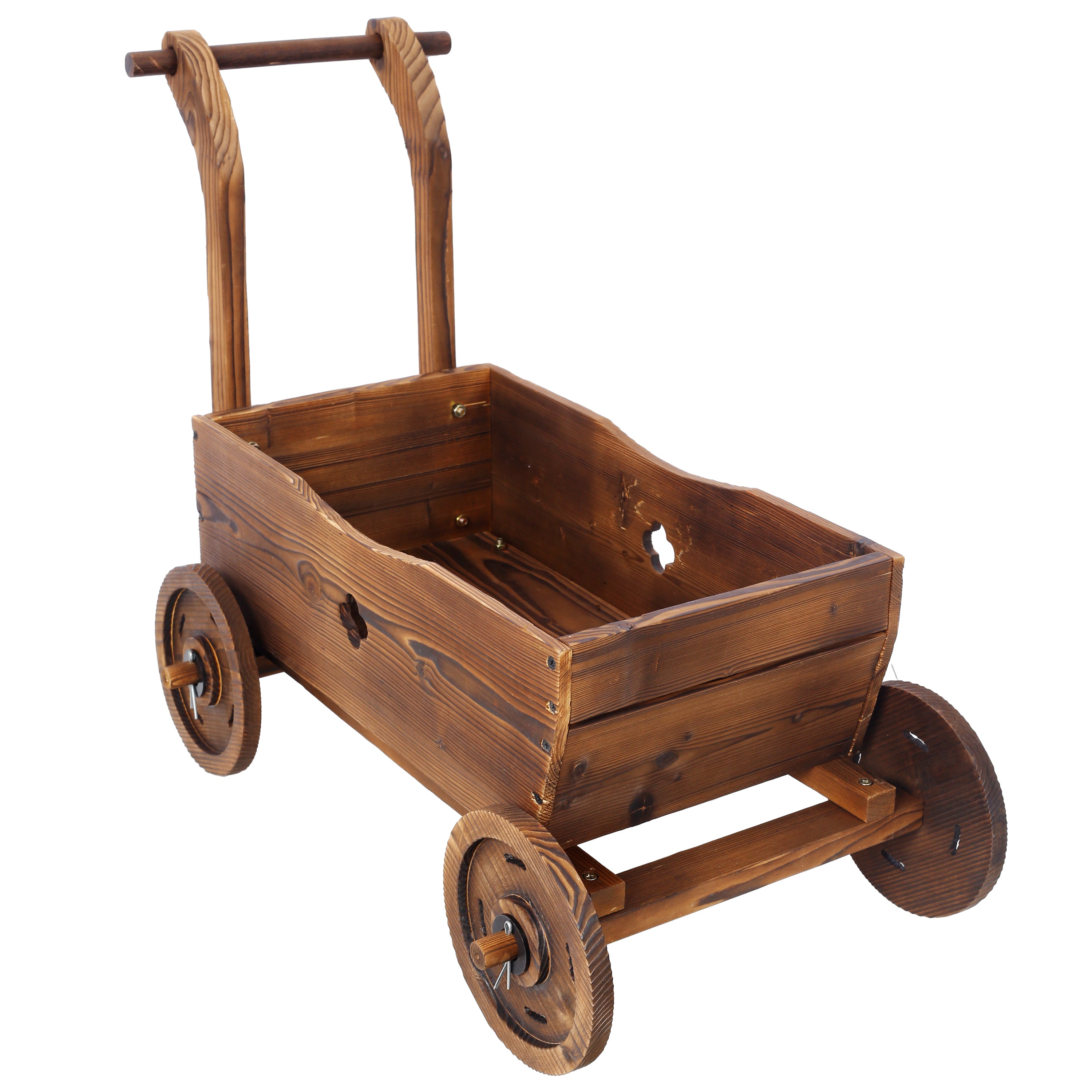 Rustic Wooden Design: The wooden wagon planter features a charming, rustic design, adding character and style to any garden, patio, balcony, or indoor space.