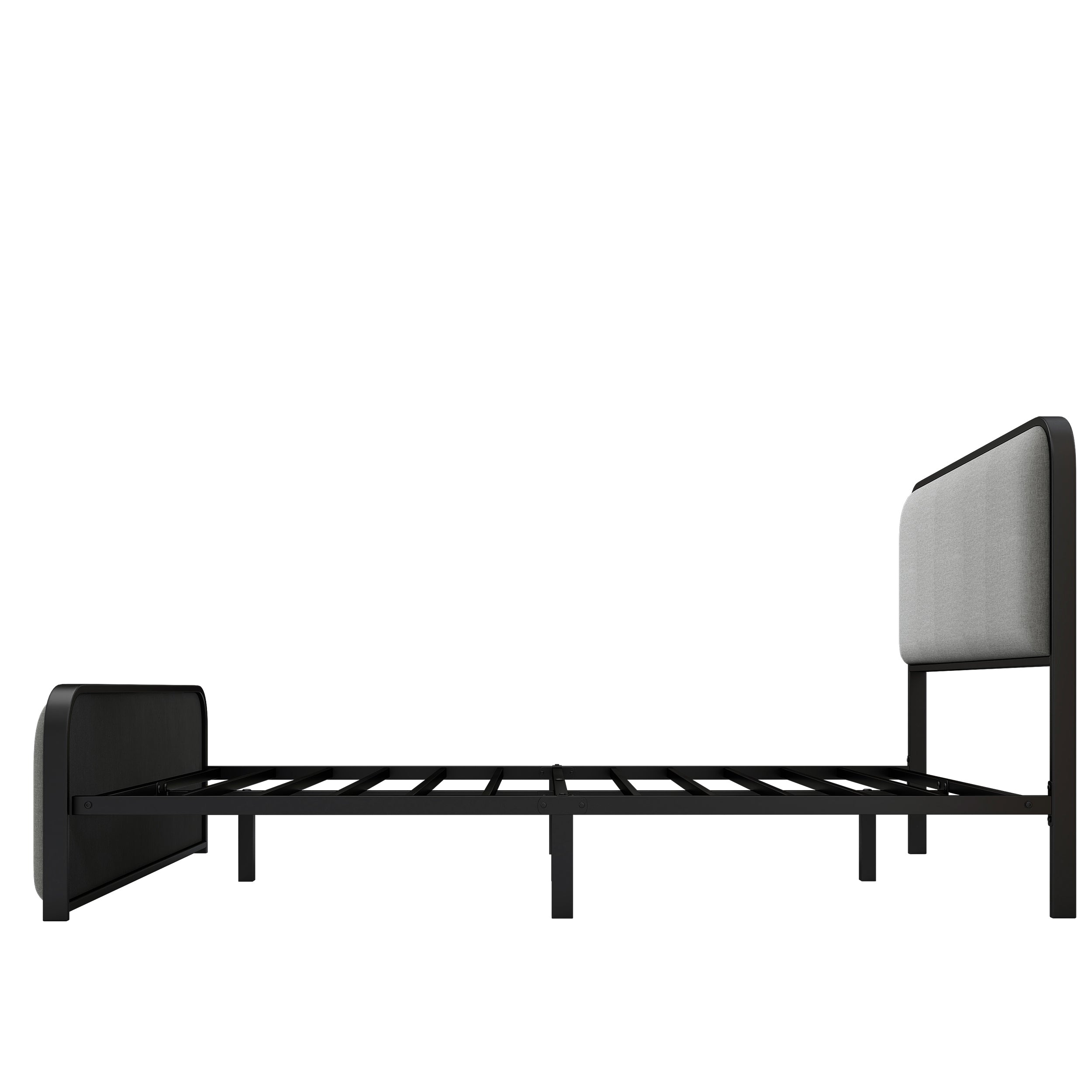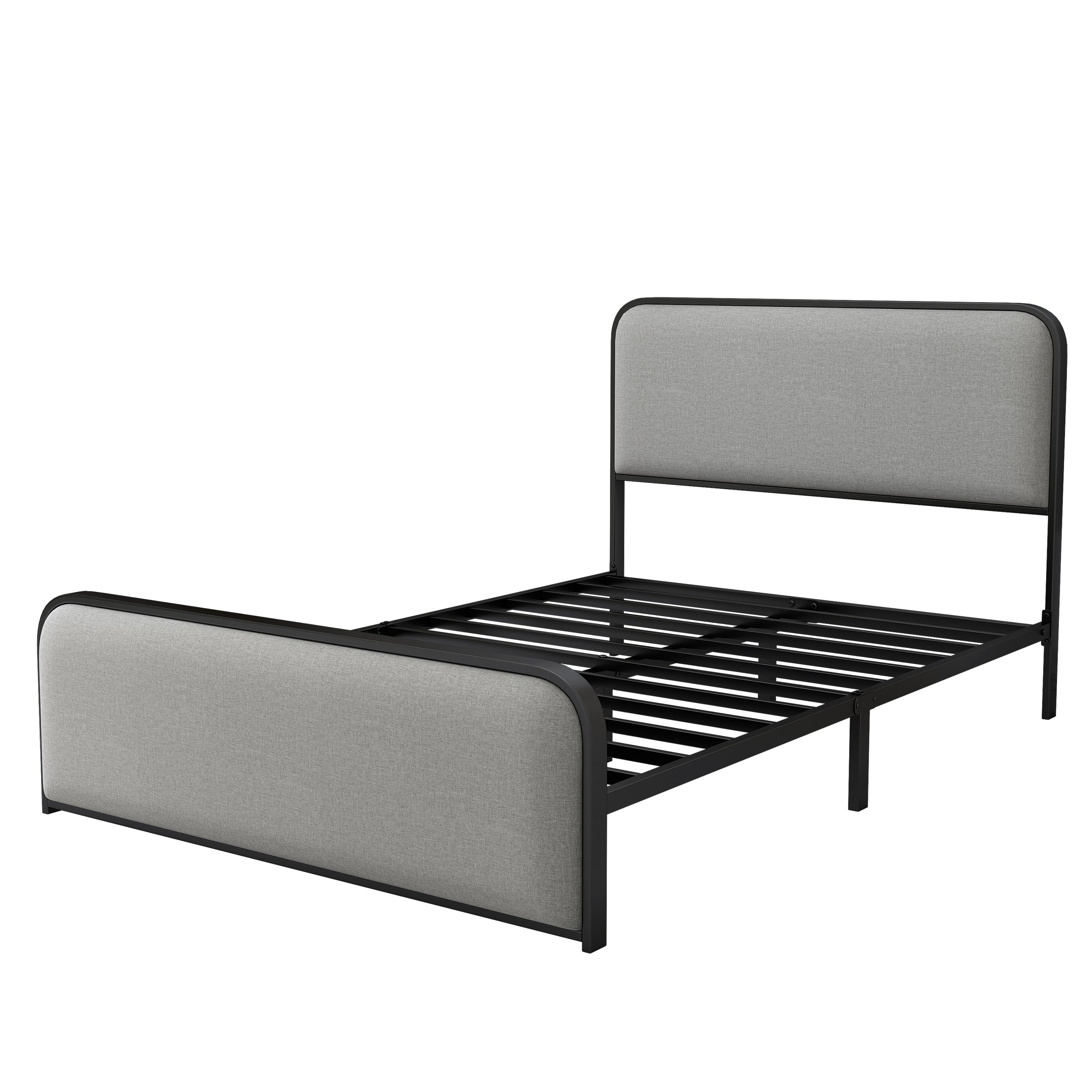 Modern Metal Bed Frame with Curved Upholstered Headboard and Footboard Bed with Under Bed Storage, Heavy Duty Metal Slats, Full Size, Grey