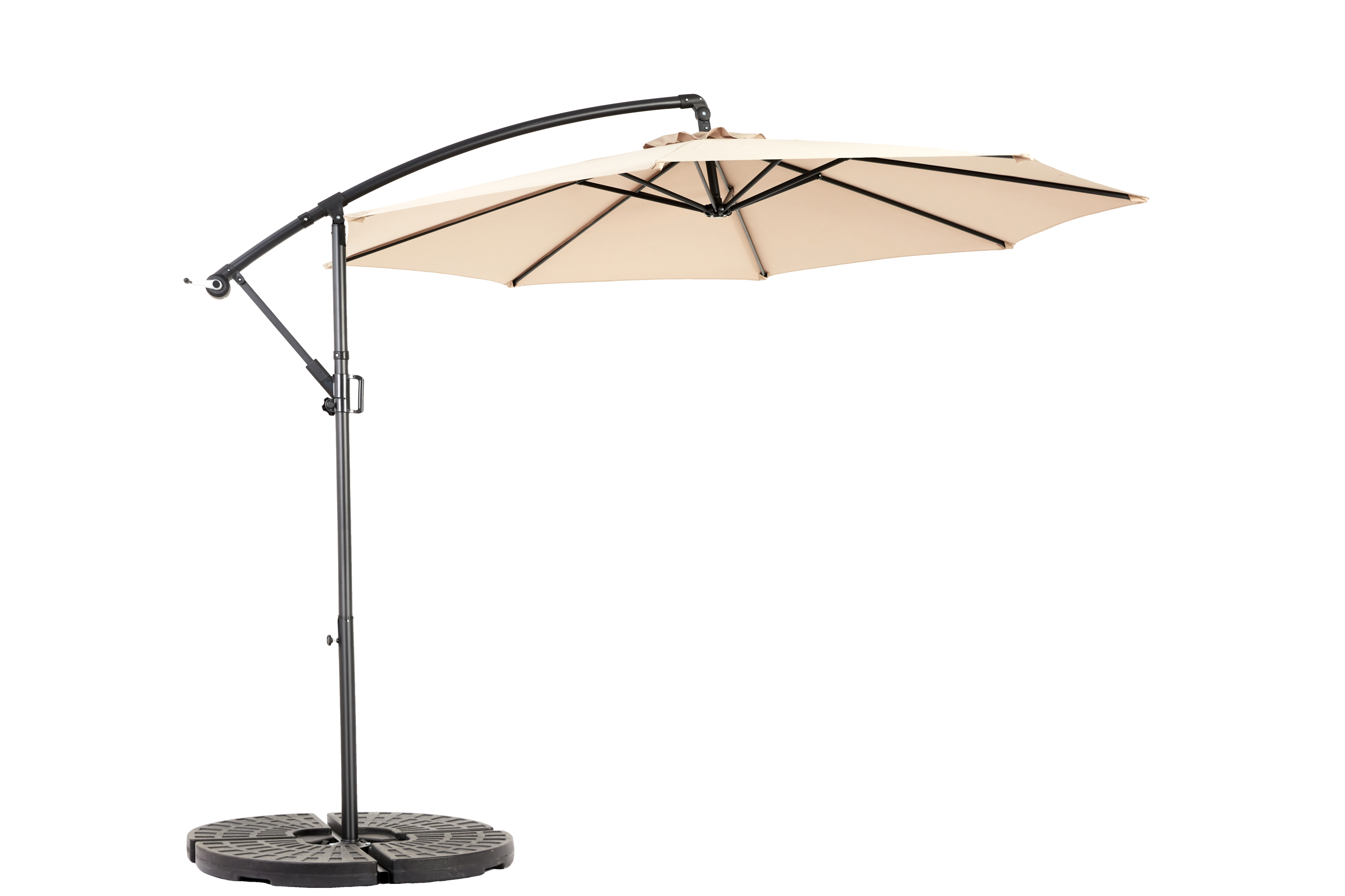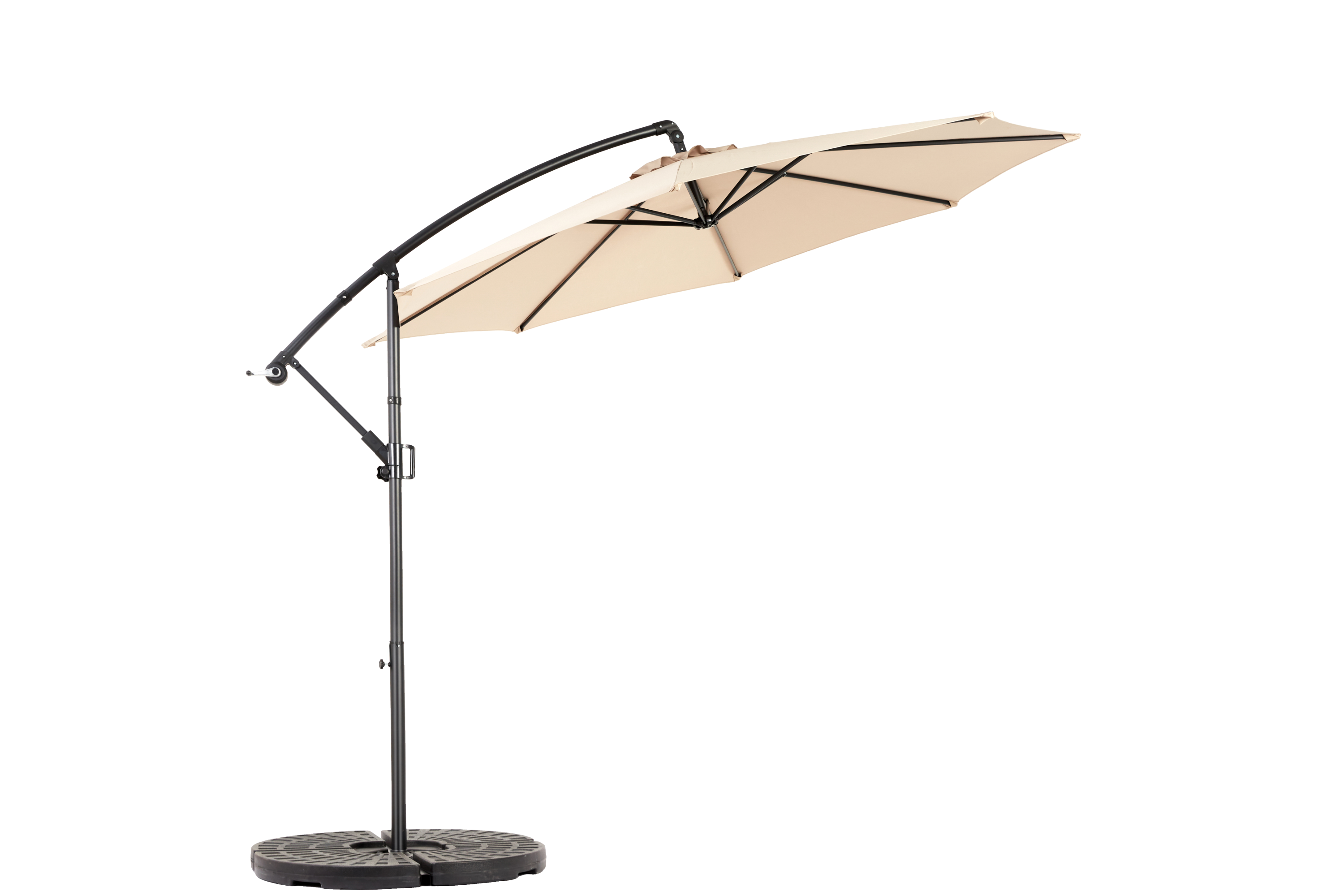 Built with 8 durable ribs for added support, this offset hanging umbrella is both sturdy and functional. The polyester fabric offers UV protection, keeping you cool while shielding you from harmful sun rays. Its sleek, modern design complements any outdoor decor, while the easy-tilt feature and crank lift system allow for effortless adjustments. Whether you're hosting a poolside party or relaxing in your backyard, this umbrella will provide the perfect shaded retreat.