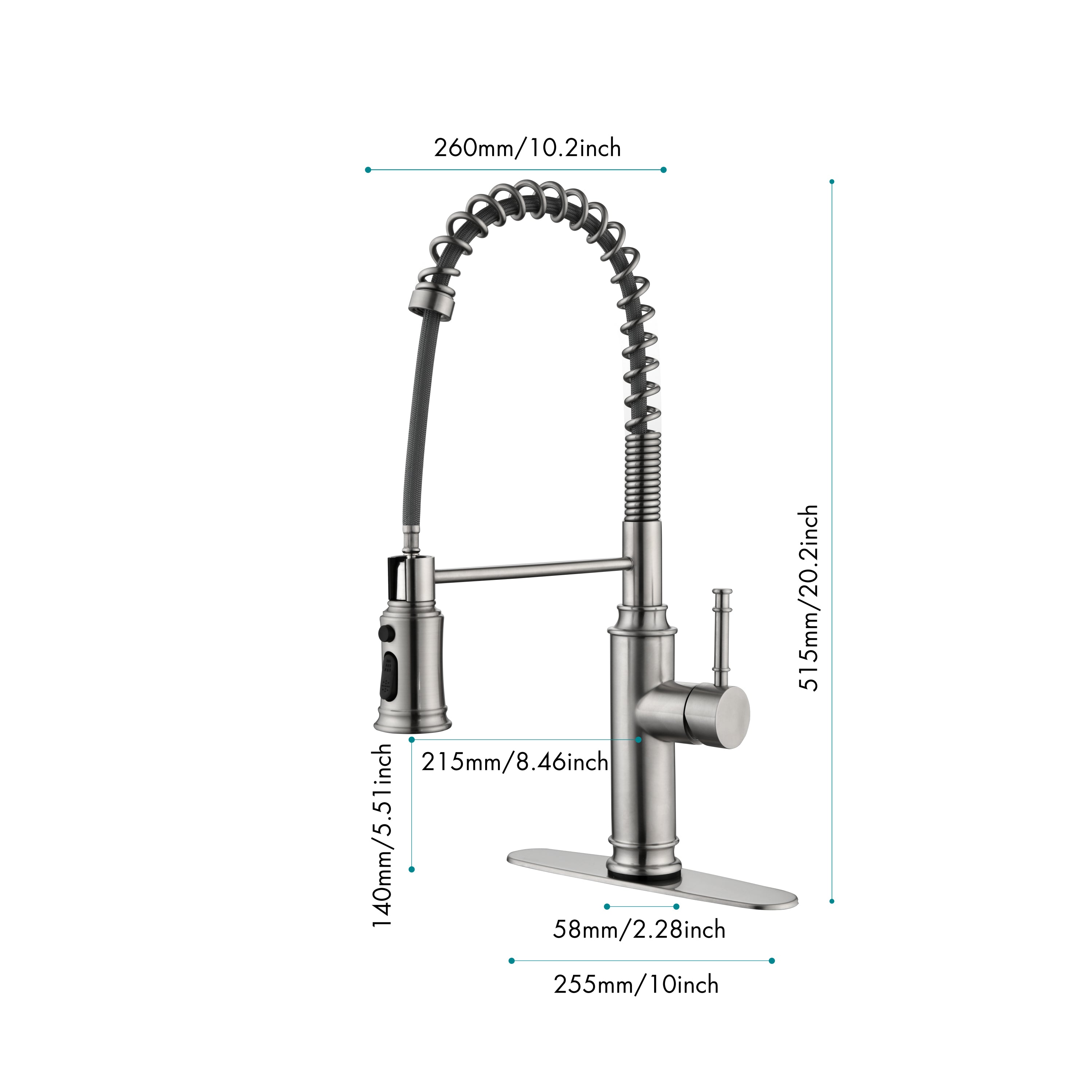 Kitchen Faucets Commercial Single Handle Single Lever Pull Down Sprayer Spring Kitchen Sink Faucet