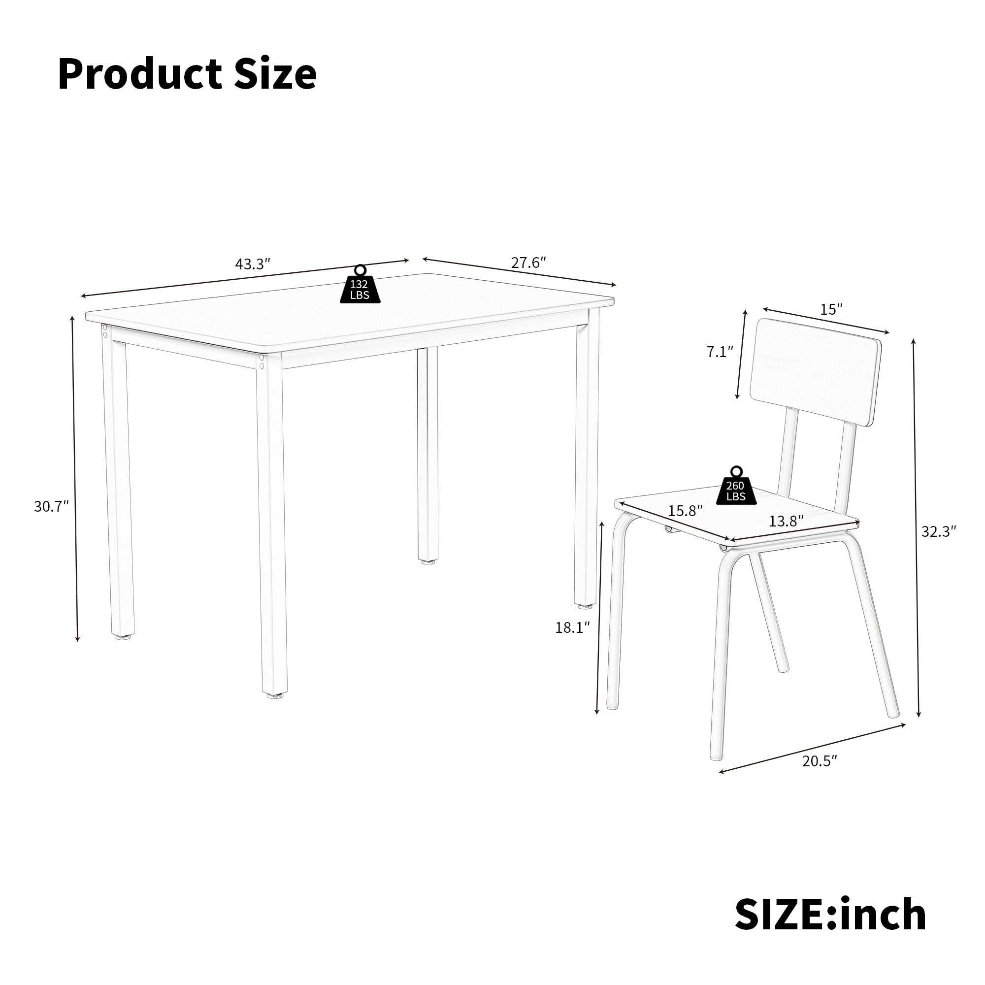 - Modern Dining Table and Chairs Set: This dining table set contains 1 table and 4 chairs. Table size: : 43.3"L x 27.6"W x 30.7"H; Chair Size: 32.3"H x13.8"W x 15.8"L. It has a wide range of uses, which can be used for home, kitchen, living room and dining room, etc.