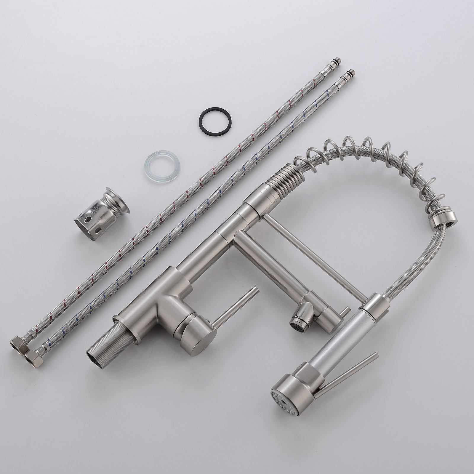 CONVENIENT DUAL-FUNCTION SETTINGS - Enhance your experience even further by using the 360 degree rotate and dual-function setting. The setting lets you choose between the stream or spray to make it easier than ever to wash your hands, dishes, or anything else. You can also easily adjust the water pressure and temperature using the single handle attachment! High Arch Spout Design with 360-degree Rotation: Long neck design such as gooseneck, offers more room for a variety of sink activities, for kitchen, laundry room, farmhouse, restaurant,camper and trailer