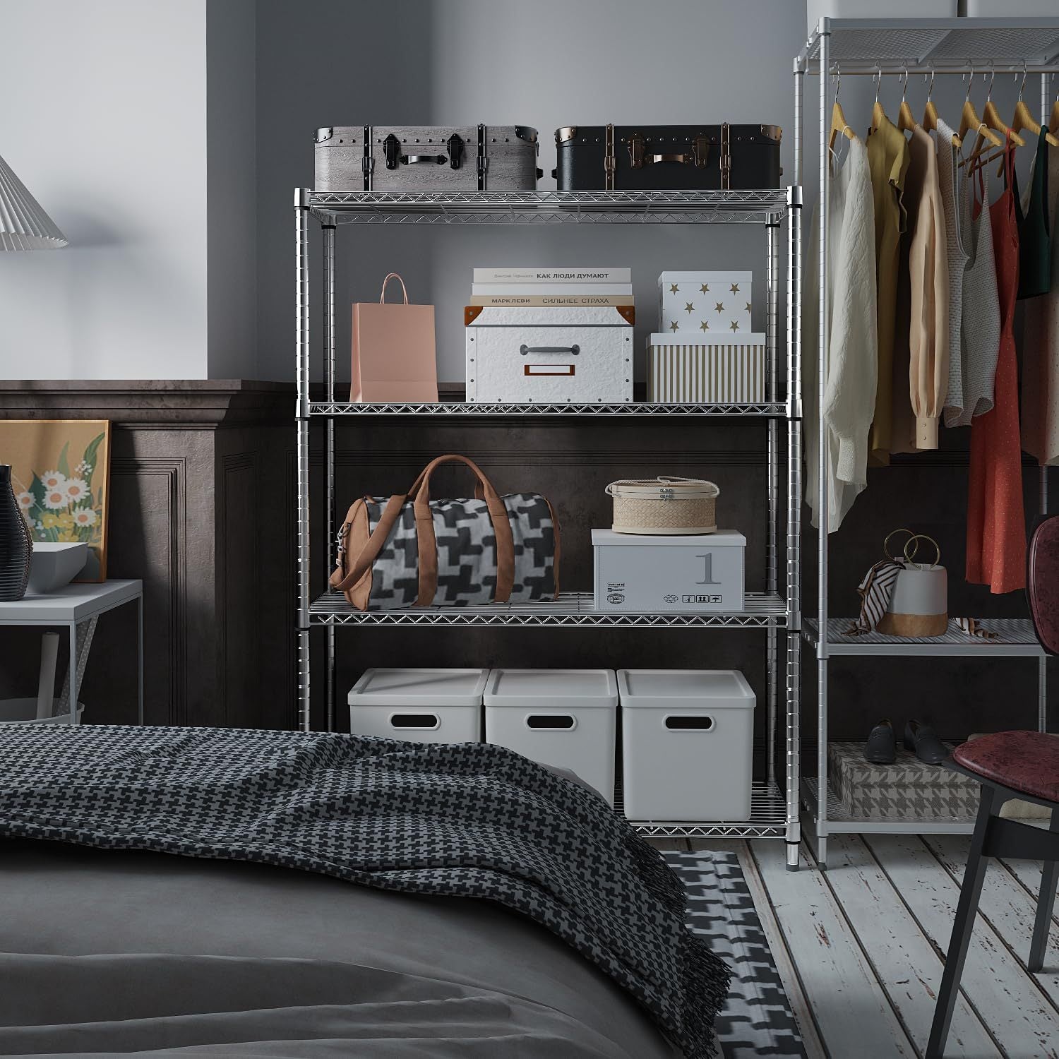 Each shelf is height-adjustable, allowing customization for items of all sizes. The ventilated wire design prevents dust buildup and promotes airflow, keeping stored items clean and dry. With its easy assembly and versatile design, this shelving unit is perfect for home, garage, office, or commercial use.