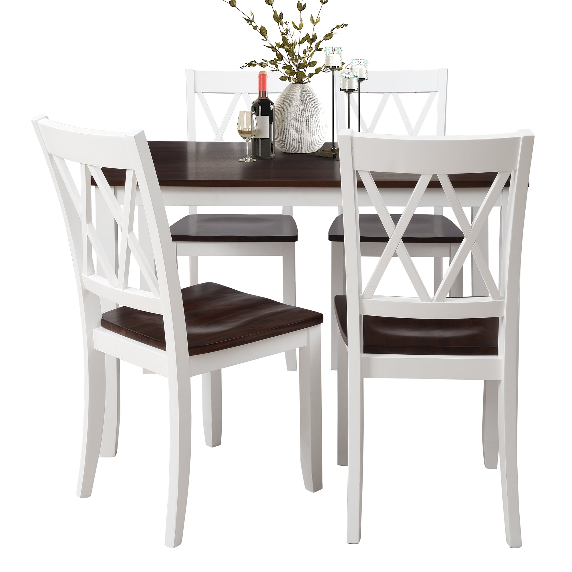 TOPMAX 5-Piece Dining Table Set Home Kitchen Table and Chairs Wood Dining Set, White+Cherry