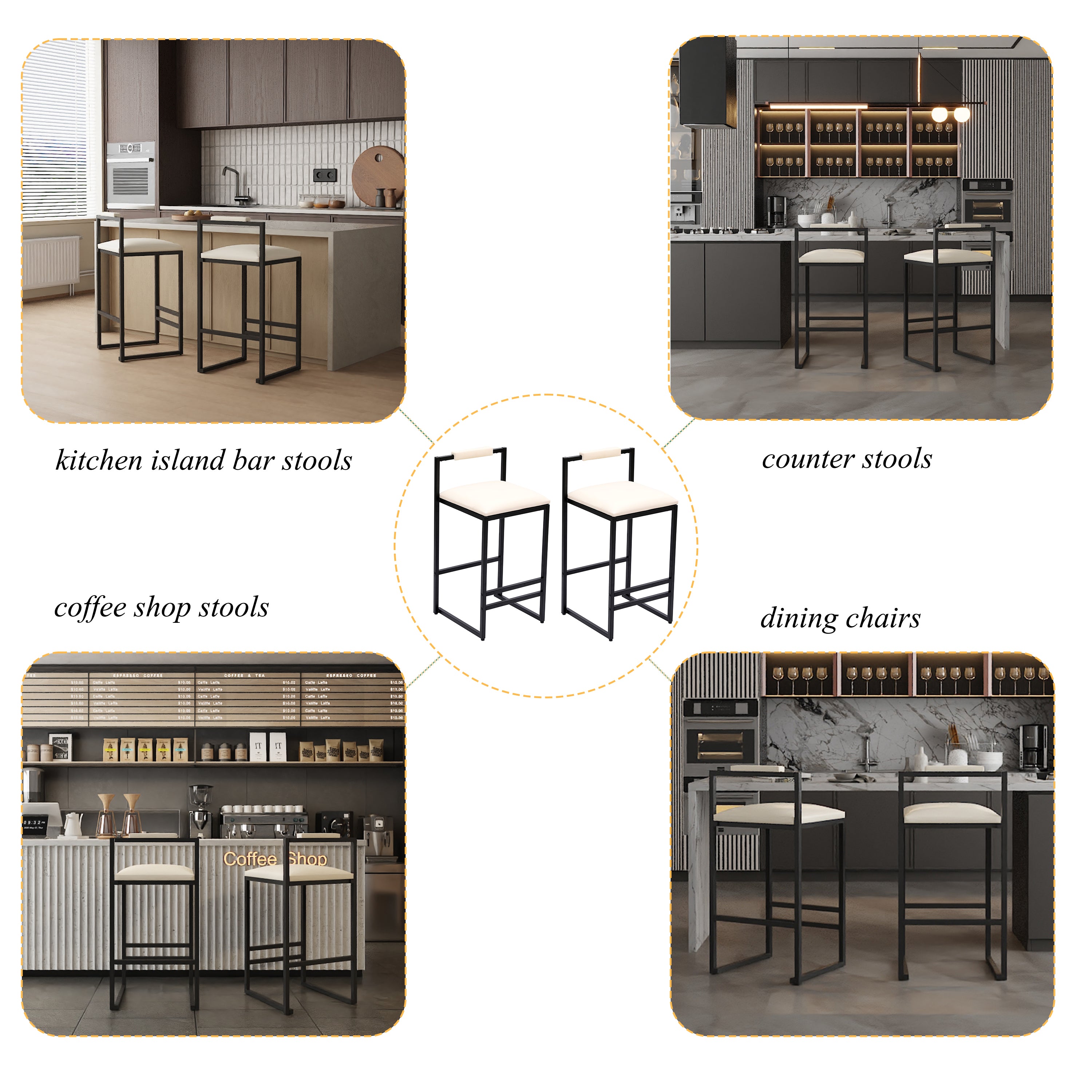 • Versatile Use: Our set of 2 stools can be used in various settings such as bars, kitchens, dining rooms, cafés, restaurants, living rooms, vanity rooms, apartments, and offices. Enjoy comfortable seating with a touch of style wherever you need it.