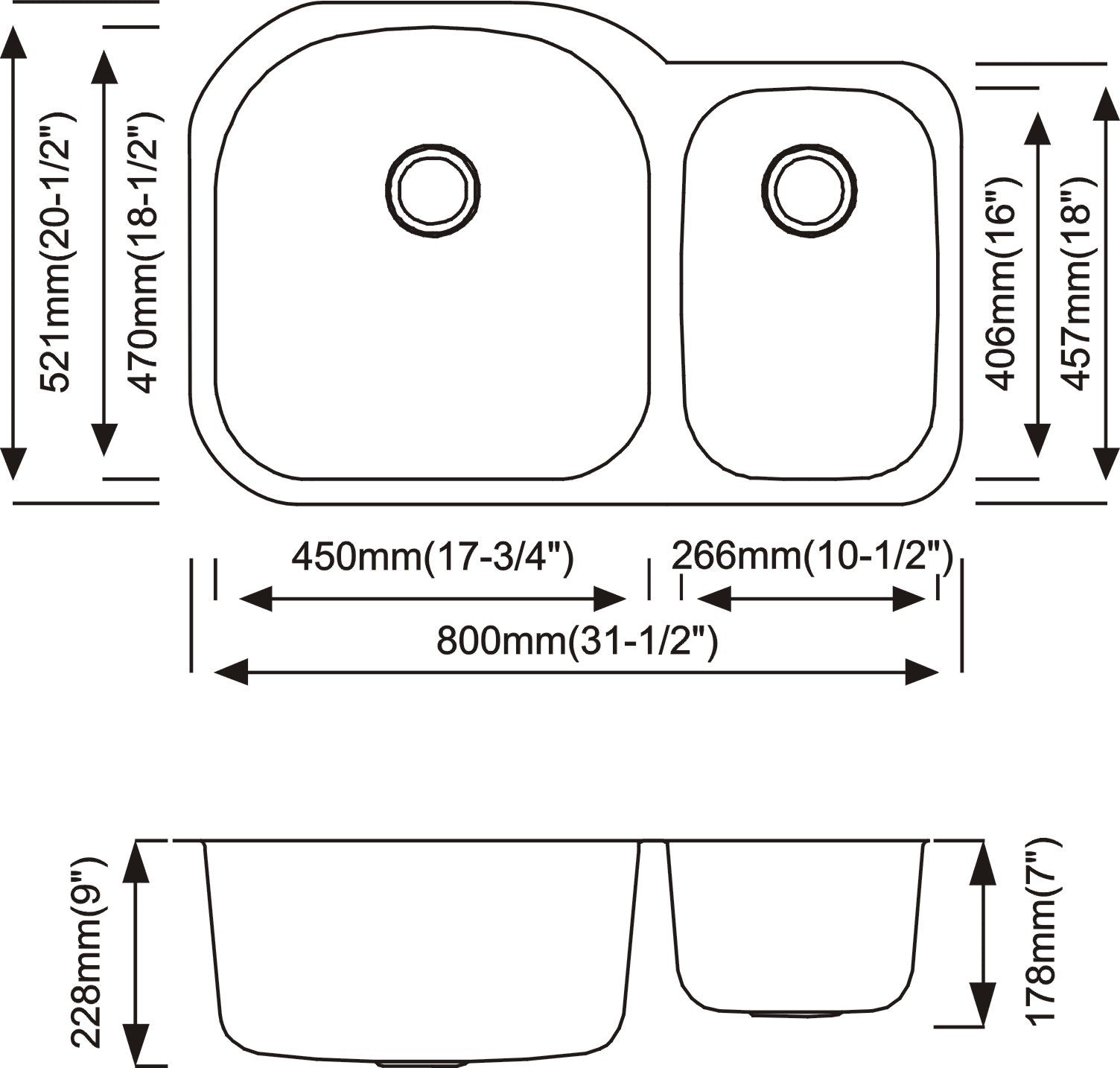 • 70/30 Double Bowl Split – Larger bowl for pots, smaller for prep or rinsing tasks.