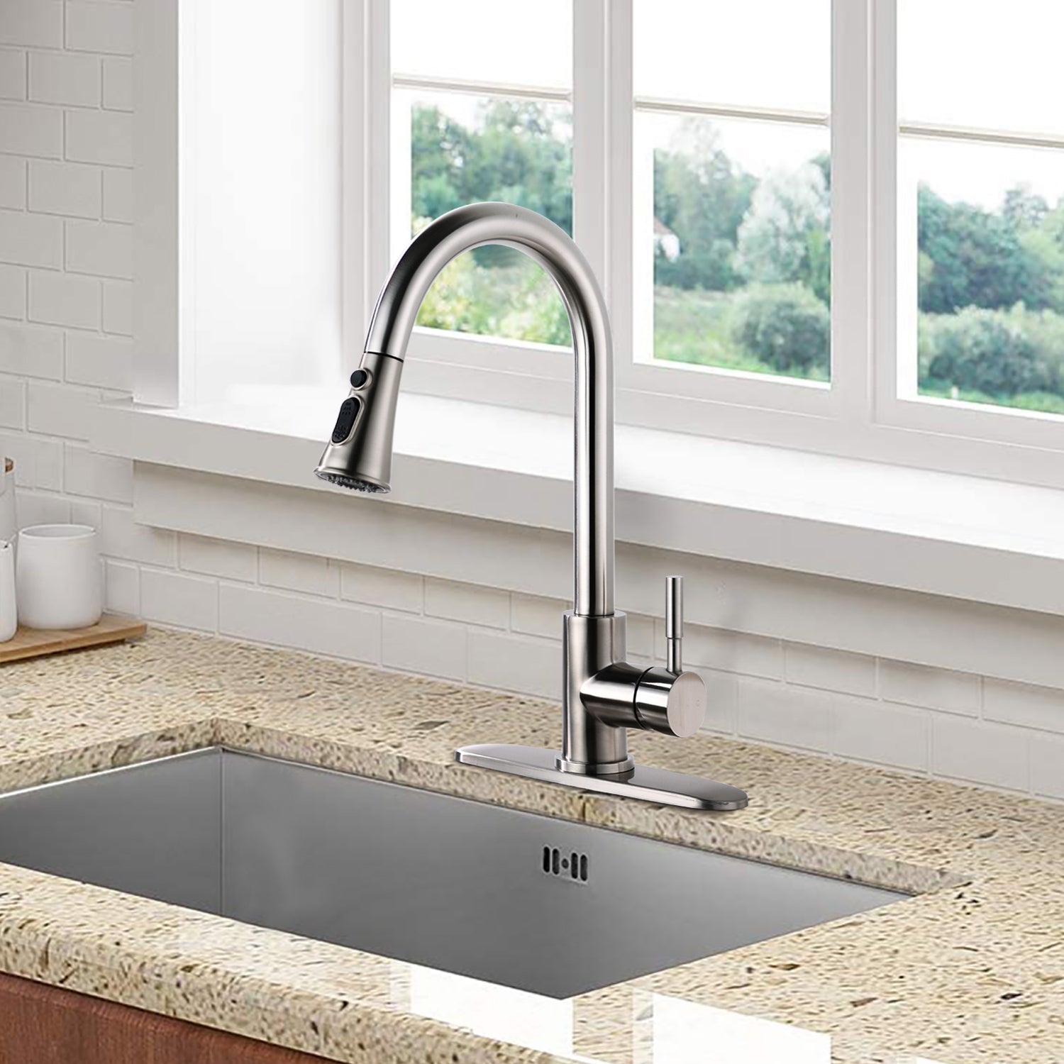 Pull Down Kitchen Faucet with Sprayer Stainless Steel Brushed Nickel