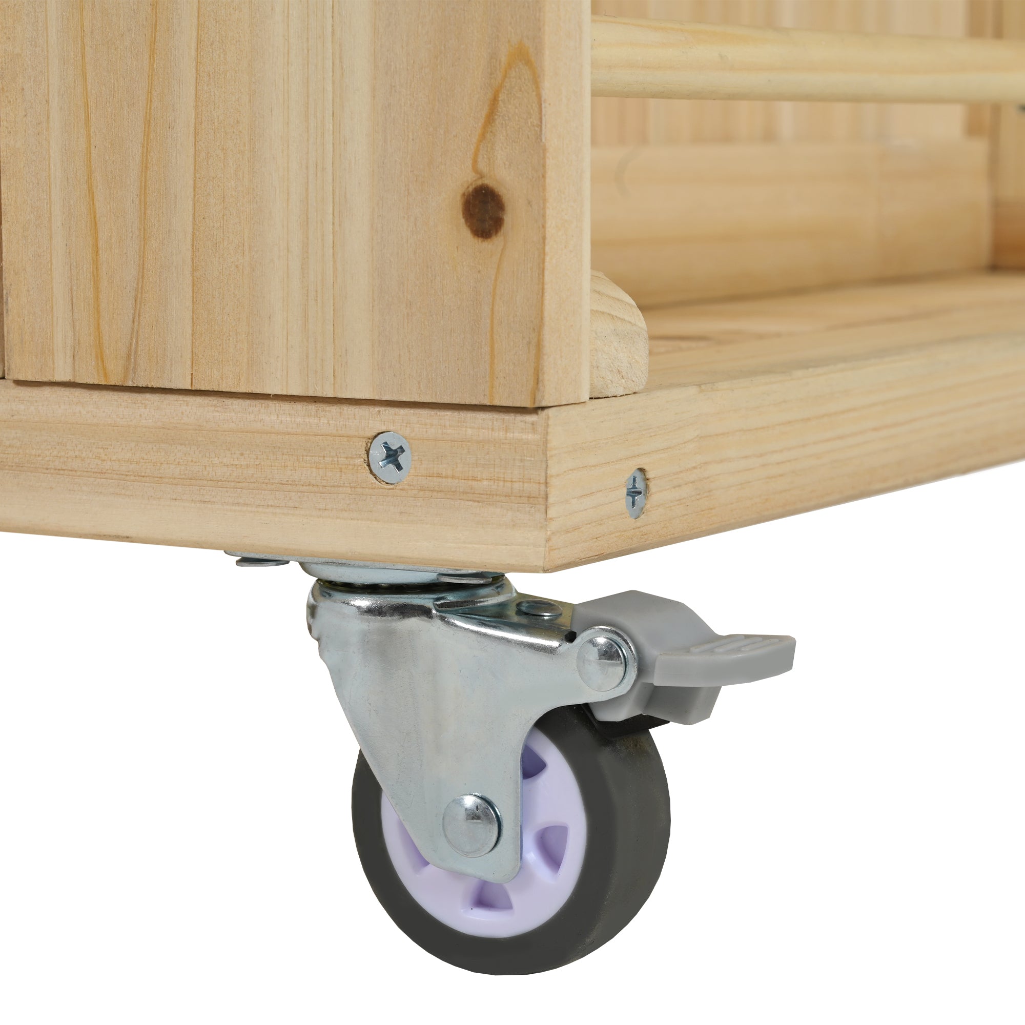 This kitchen island is fitted with four durable wheels, allowing for easy movement to any desired location, whether for cleaning or repositioning. The lockable wheels provide added stability, ensuring the island stays securely in place when needed.