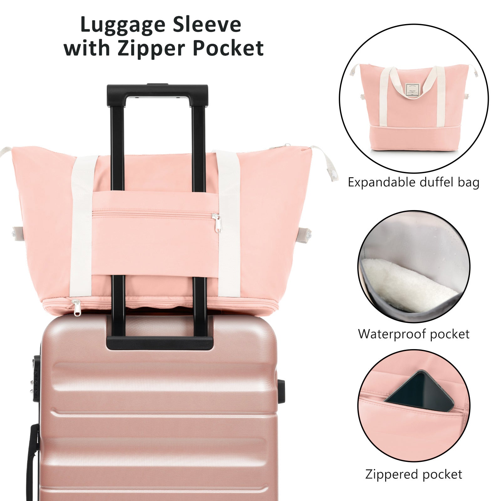 • Expandable duffel bag features a trolley sleeve with zippered pocket that easily attaches to the suitcase handle for added capacity. 8-piece packing cube set keeps your belongings organized, prevents them from shifting, and maximizes space, making it easy to find what you need while increasing convenience and comfort during travel.