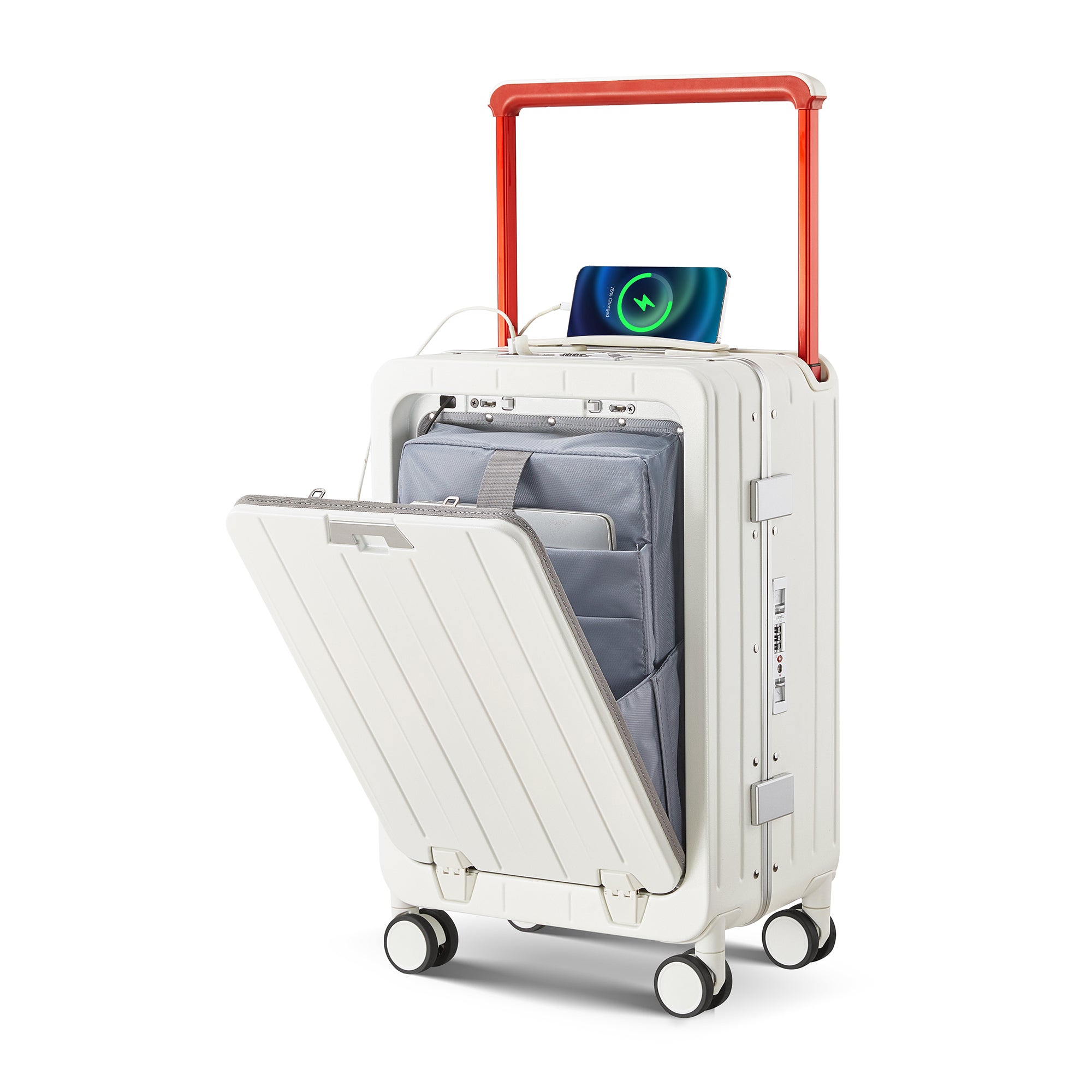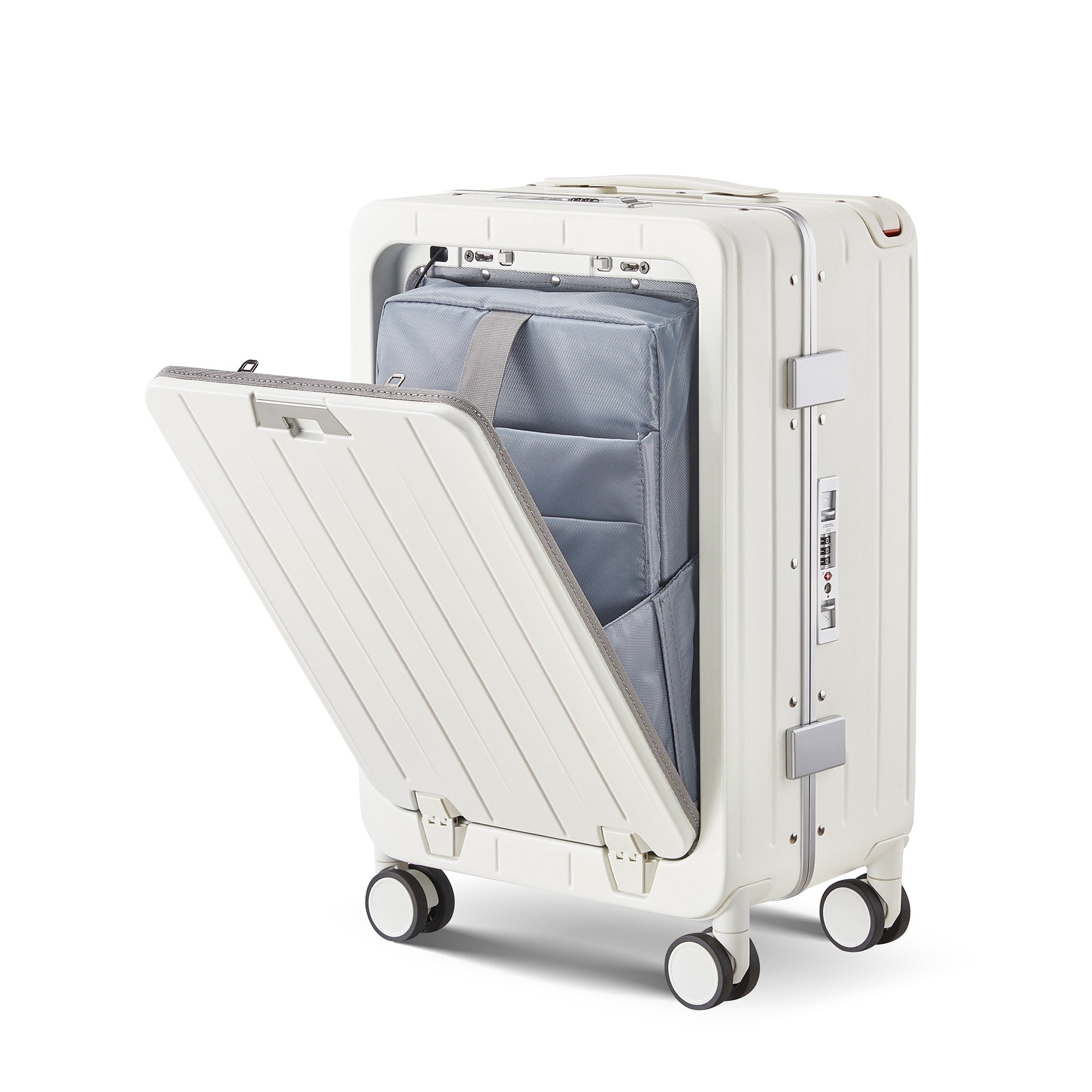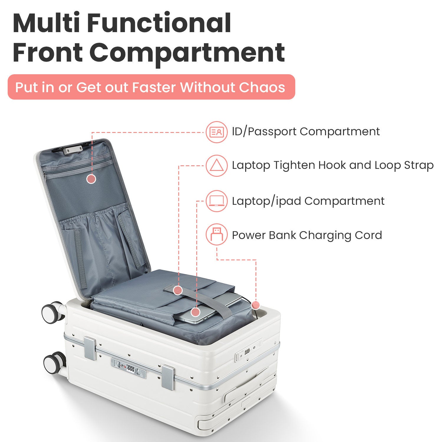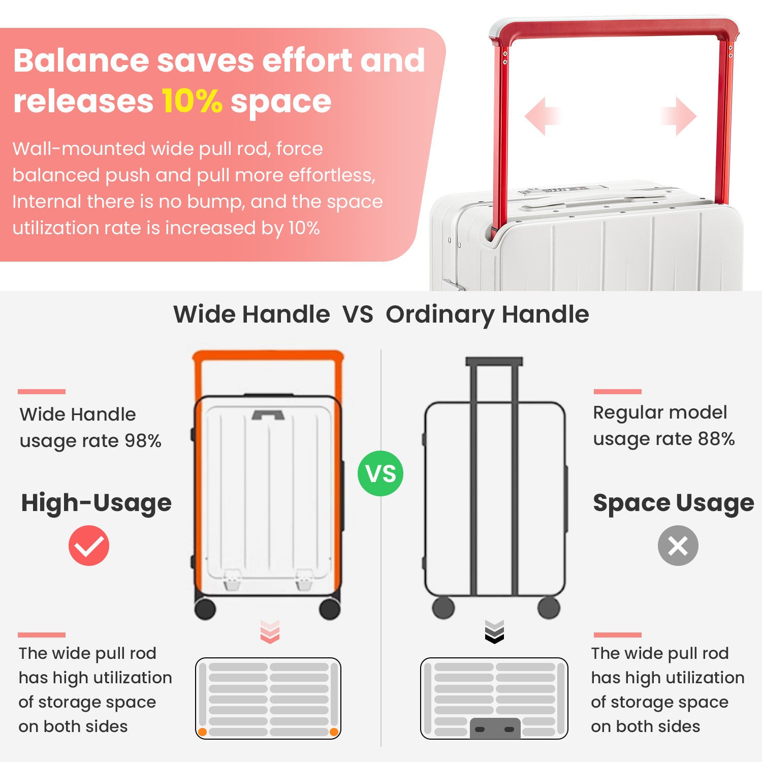 - Aluminum Frame 20 Inch with Front Open Carry-on Luggage, PC Hard Shell Suitcase, Bounce Wide Handle Pull Rod Luggage with 360°Double Wheels, Built-In TSA Lock, Airline Approved Suitcase for Business