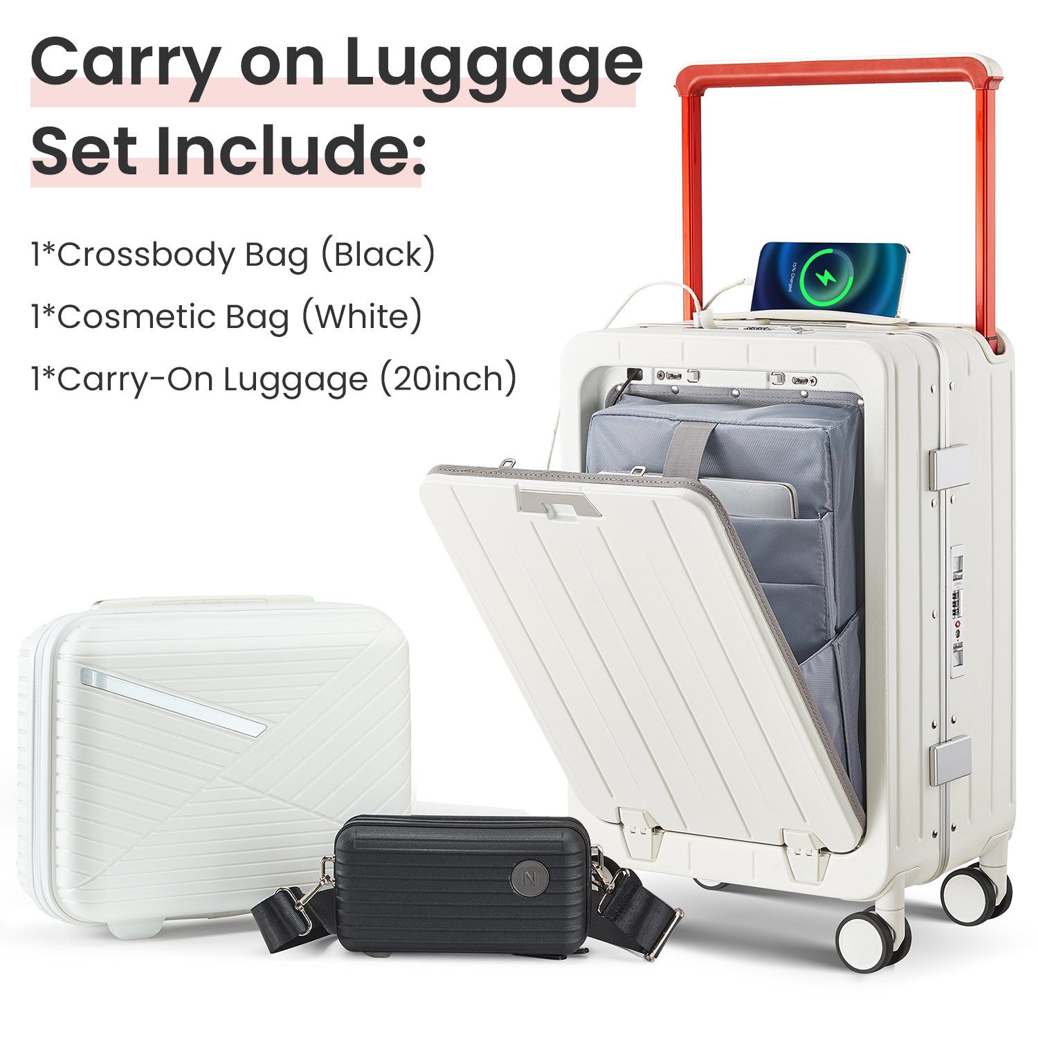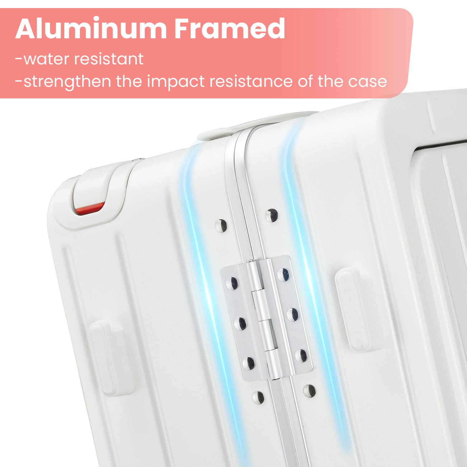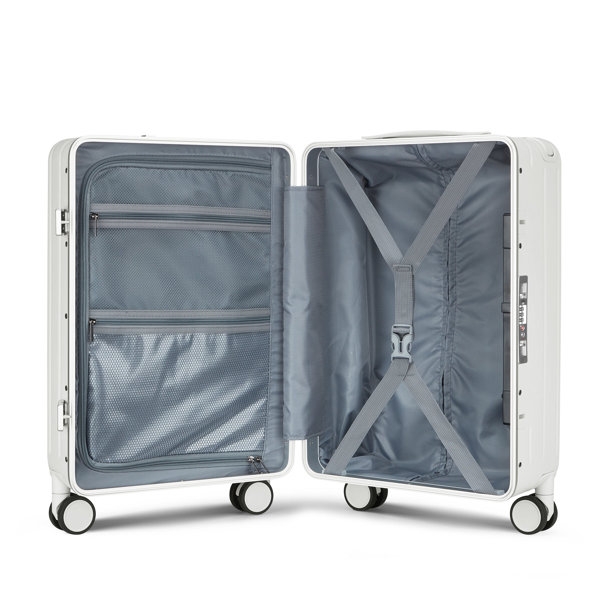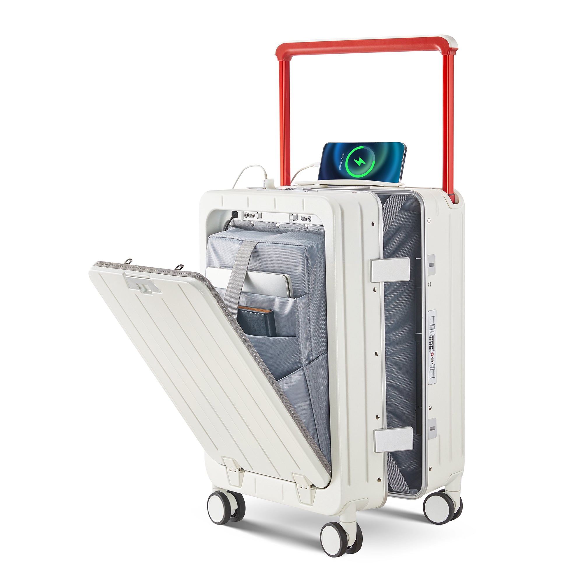 - Aluminum Frame 20 Inch with Front Open Carry-on Luggage, PC Hard Shell Suitcase, Bounce Wide Handle Pull Rod Luggage with 360°Double Wheels, Built-In TSA Lock, Airline Approved Suitcase for Business