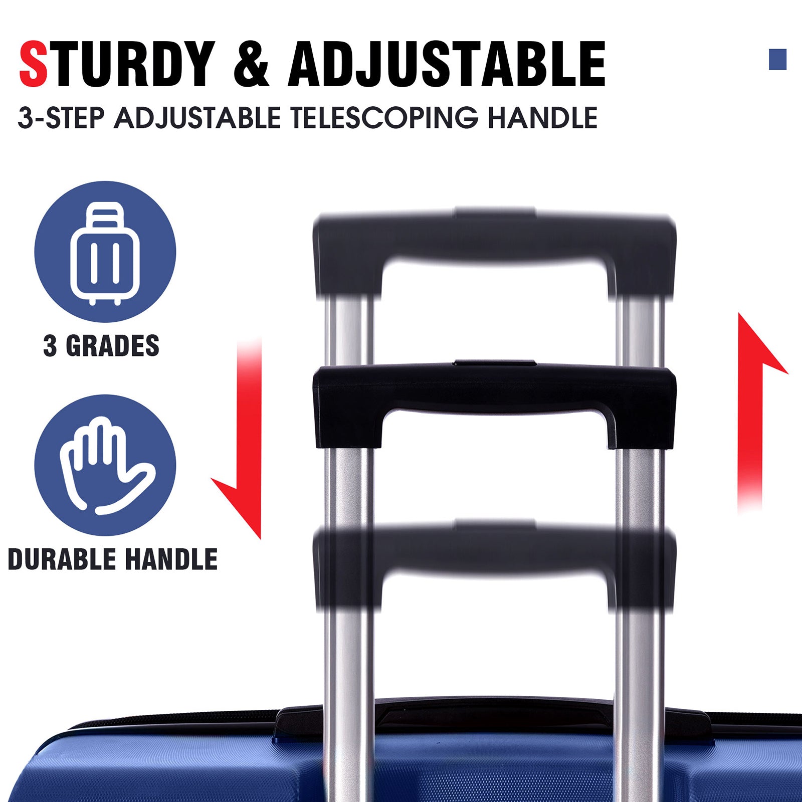 • Telescopic Handle: 3-level adjustable handle to meet the needs of users of different heights. The 20' carry-on is ideal for weekend getaways, the 24' and 28' checked suitcases are perfect for long-distance travel. One set to meet all needs. This travel luggage set is the best choice for family travel.