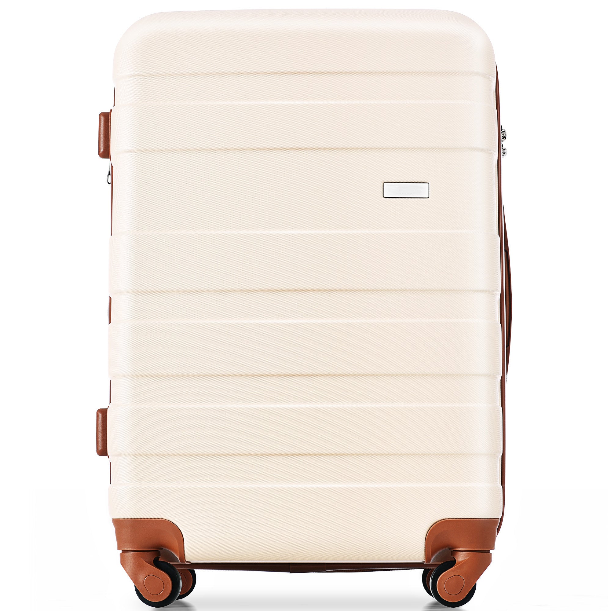 3-Piece Luggage Set New Model | ABS Hardside Spinner Suitcases with TSA Lock (Ivory & Brown)