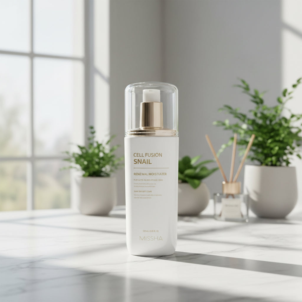 Restore your skin's balance and elasticity with MISSHA Cell Renew Snail Moisturizer 130ml. This nourishing emulsion provides a soft, elastic moisturizing sensation. Formulated with a unique blend of 40% Snail Mucus Extract and plant stem cell extracts, it works to replenish deep hydration, restore the oil-water balance, and strengthen your skin barrier. It leaves your complexion feeling firm, plump, and healthy