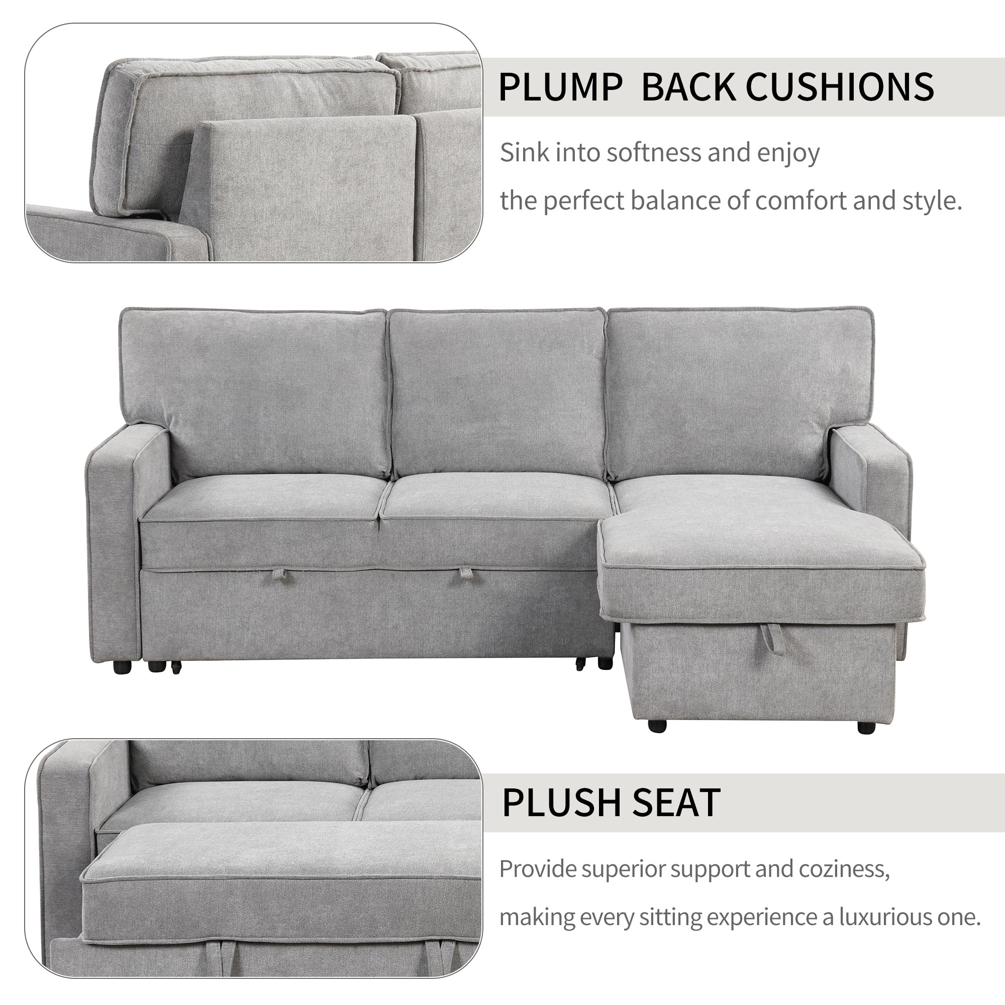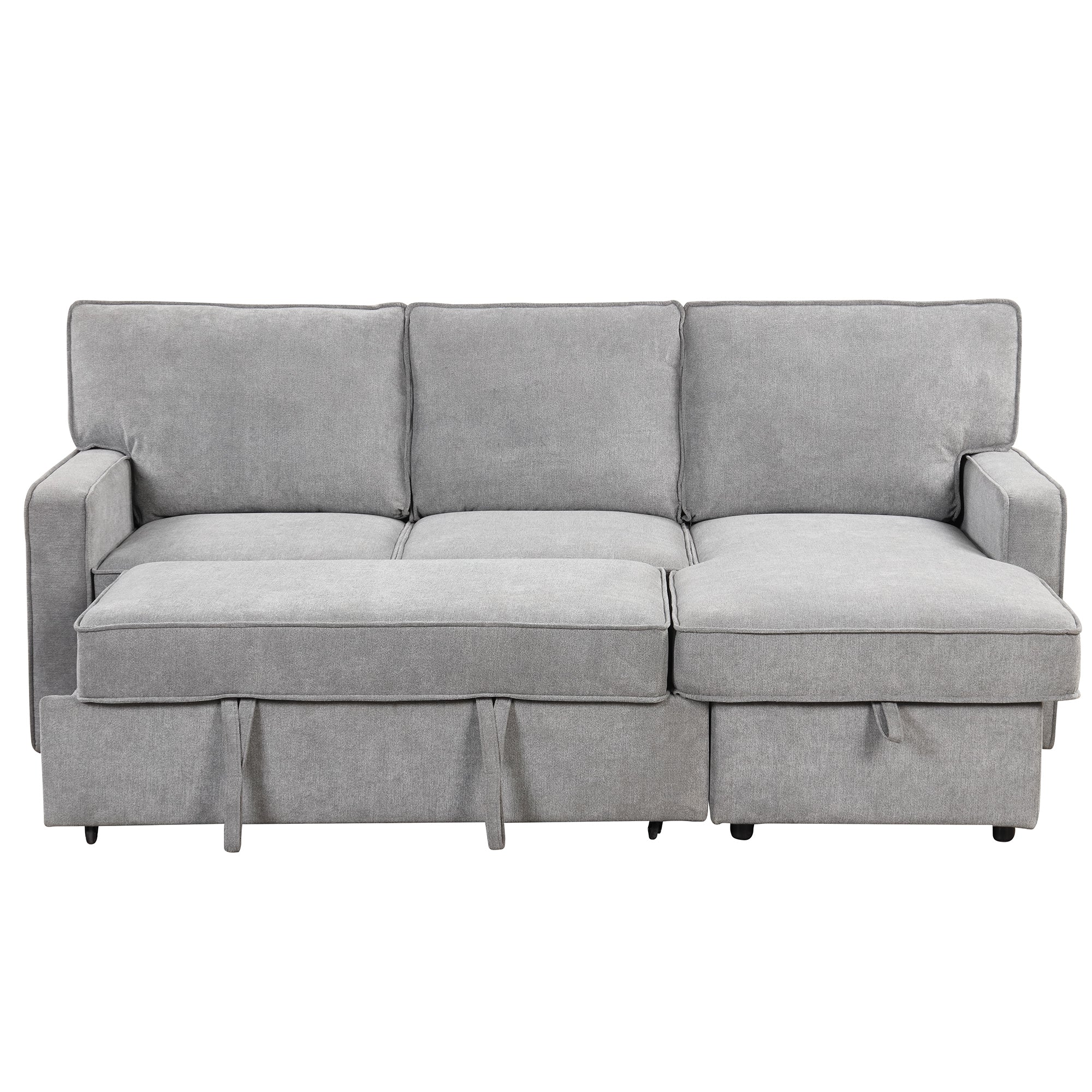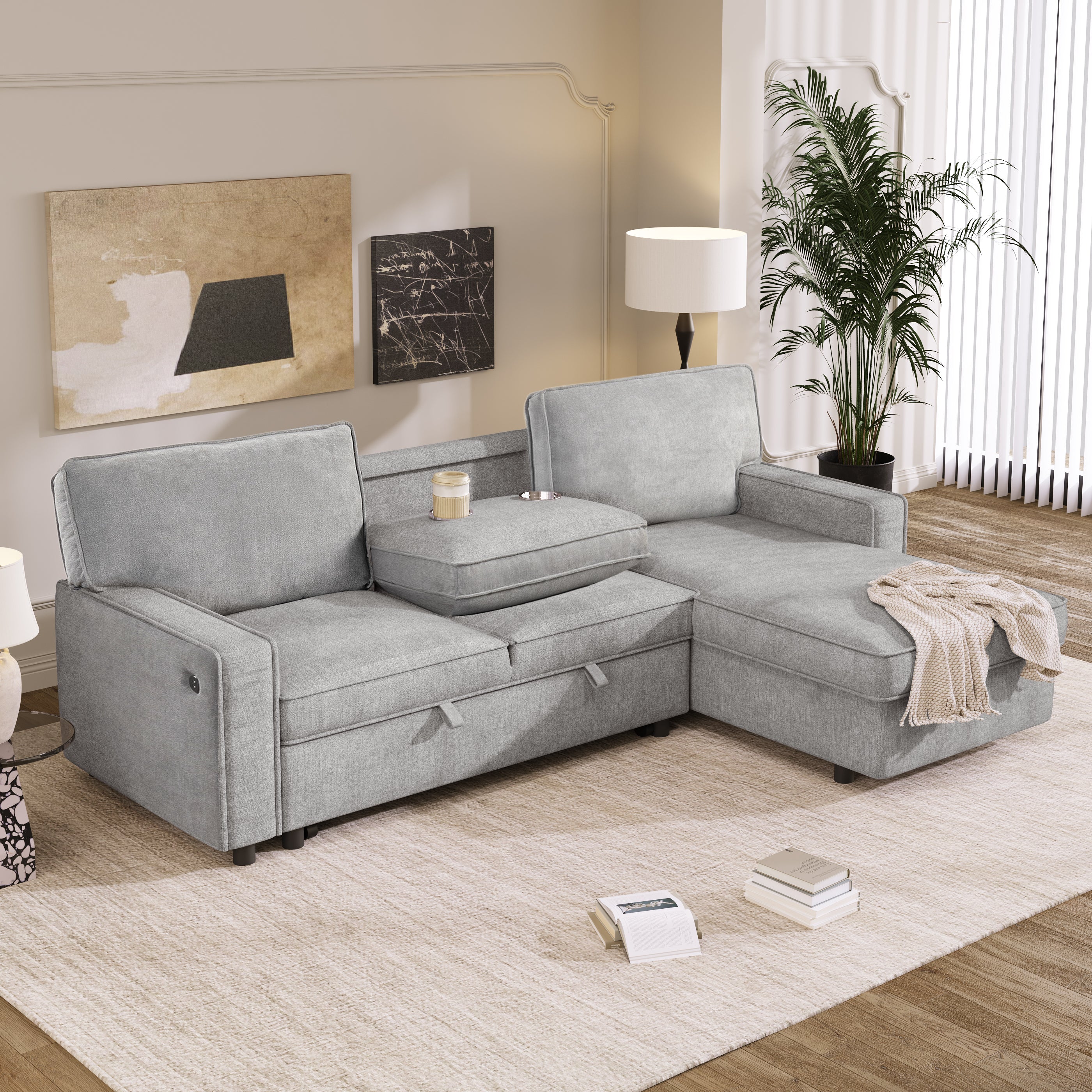 U_STYLE Upholstery Sleeper Sectional Sofa with Storage Space, USB port, 2 cup holders on Back Cushions(same sku; WY000335AAE)