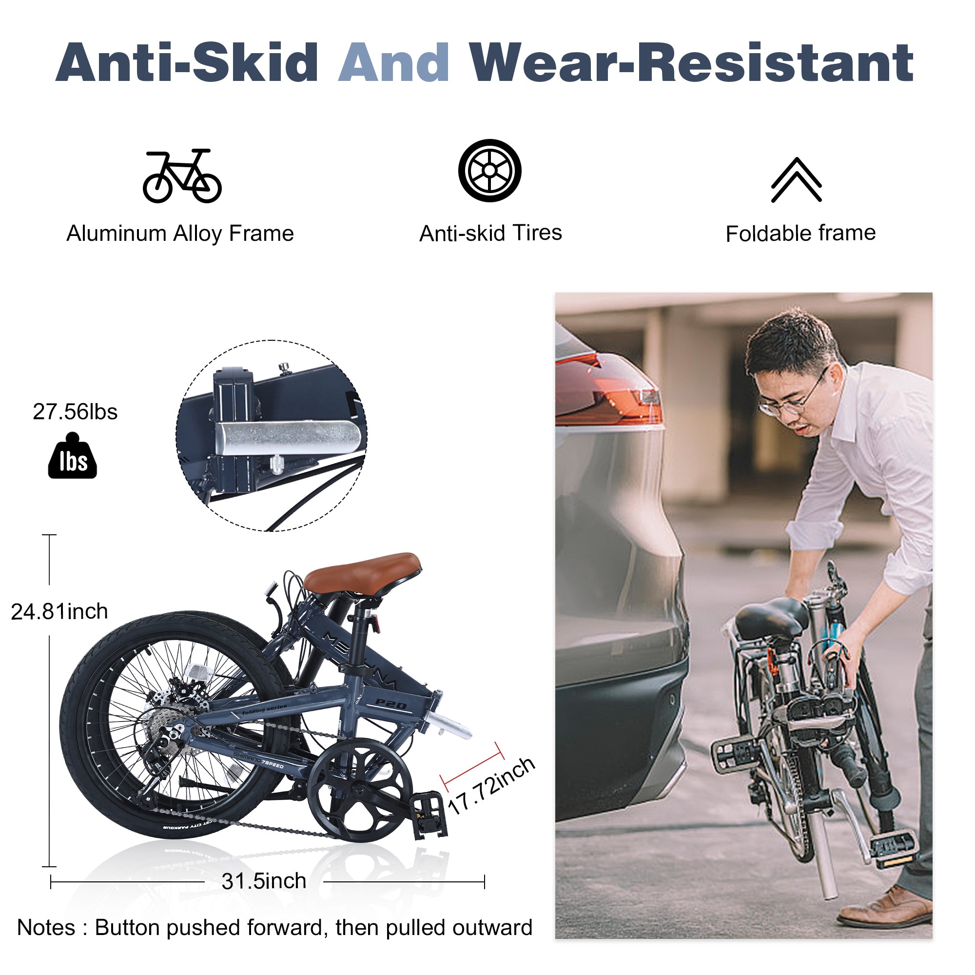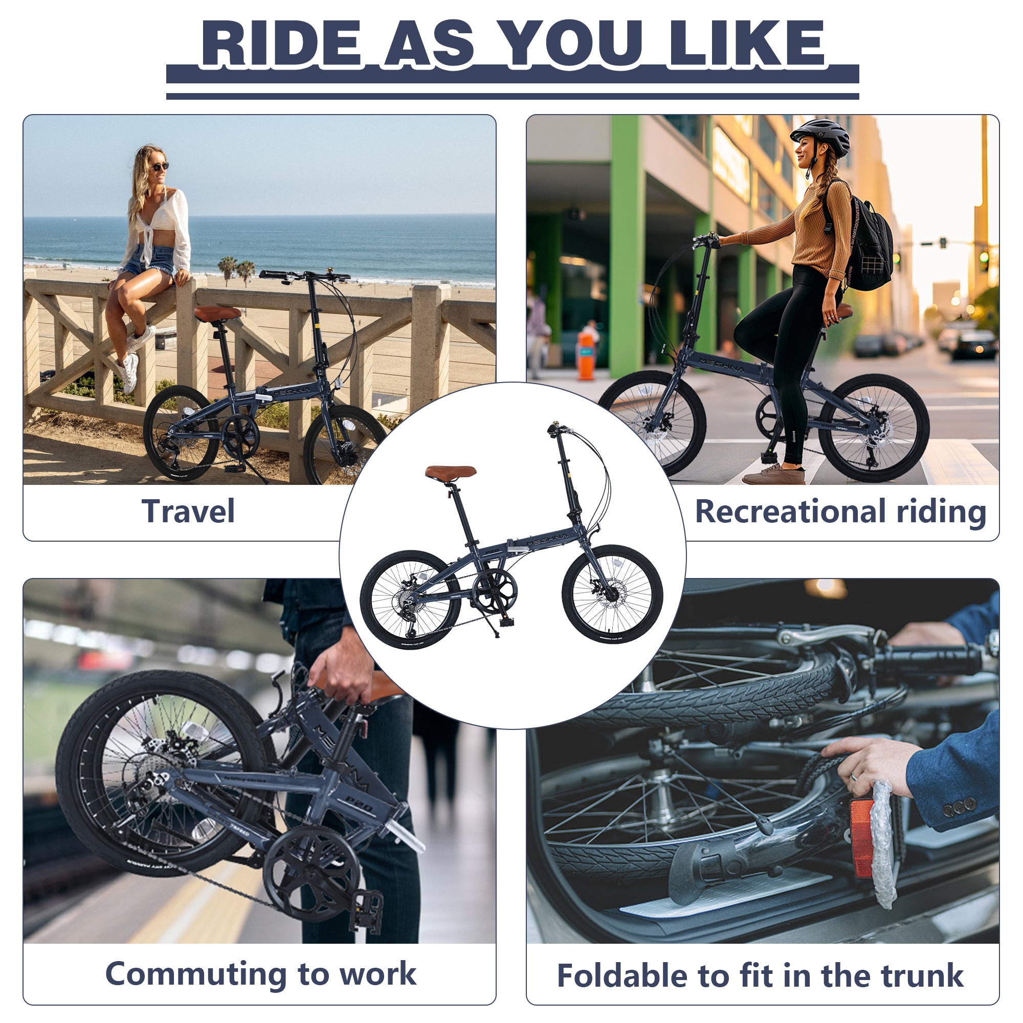 20' Folding City Bike, Lightweight Aluminum Frame, 7-Speed Folding Bike
