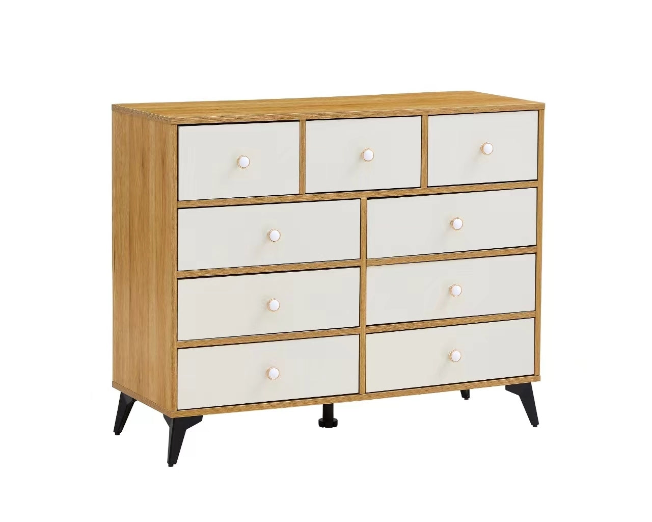 9-Drawer Cabinet Dresser, Wood MDF Boards, Wood Color Storage Unit