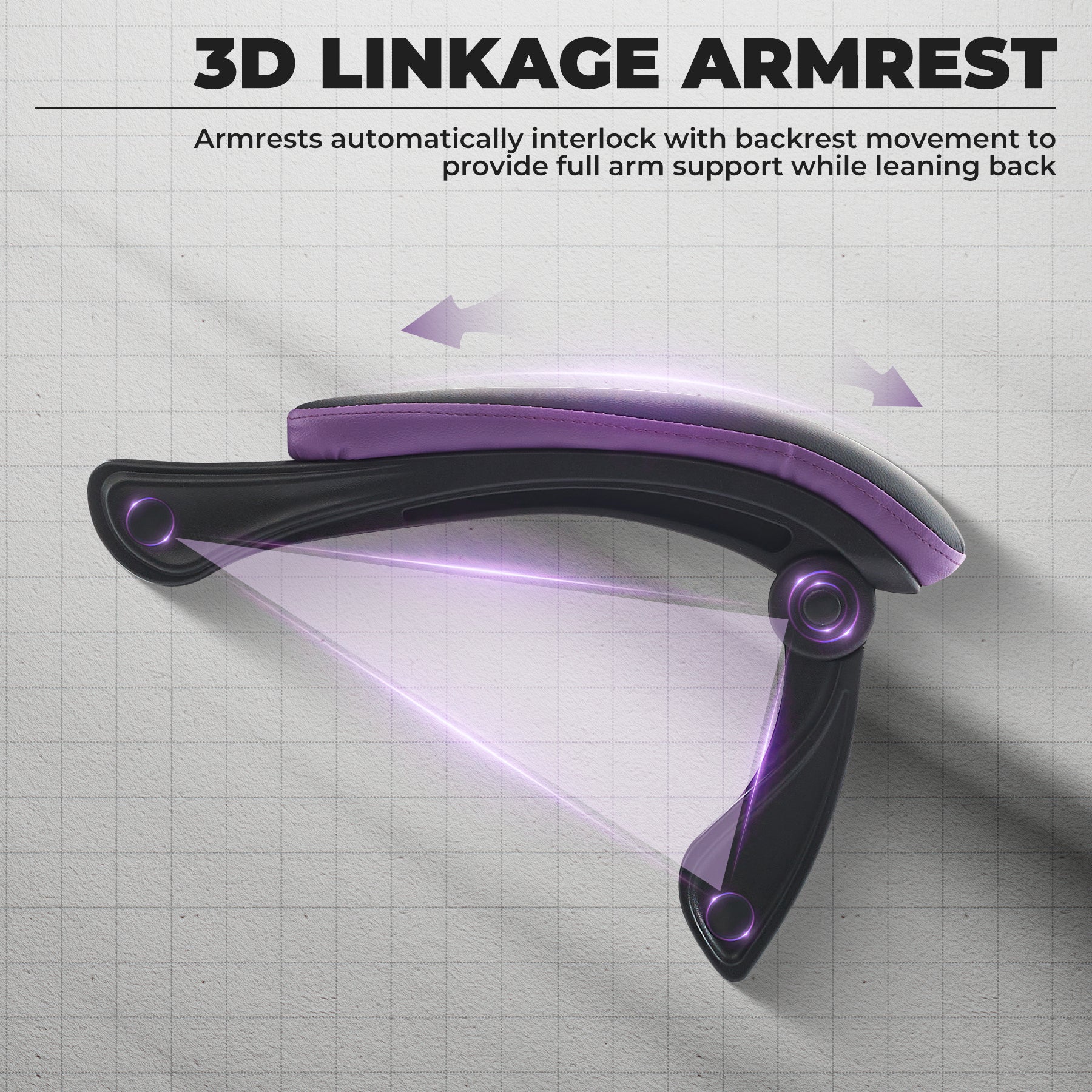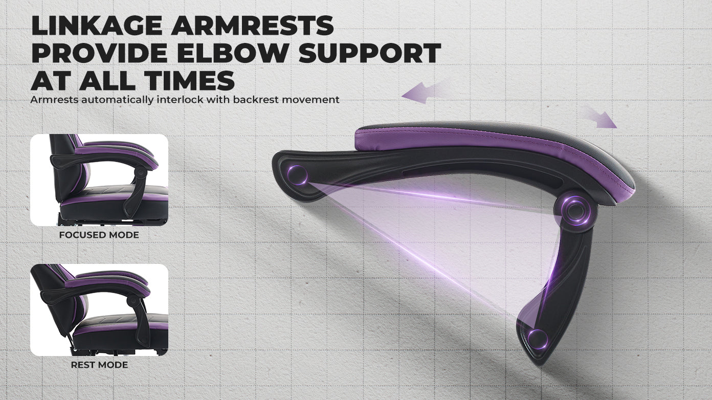 • Upgrade The Linkage Armrest: The game chair uses a 3D linkage armrest design. The armrest is linked to the tilt Angle of the back of the chair. As the back reclines, the armrest is adjusted in sync to ensure full support for the arm at any Angle. This design enhances comfort and greatly improves convenience when using, making the posture more natural and relaxed when playing or working