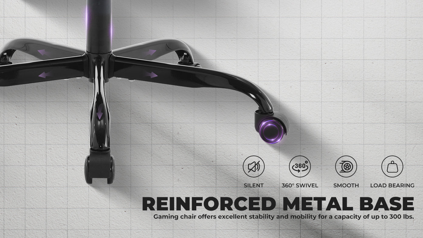 • Excellent Stability: The chair is equipped with a high-strength steel frame and a sturdy iron base to further enhance its overall durability and load-carrying capacity. The iron base can provide solid support, whether it is an intense game operation or long office hours. The chair has a maximum load-bearing capacity of up to 300 pounds, ensuring that users of all sizes can use it safely and comfortably, enjoying lasting stability and peace of mind