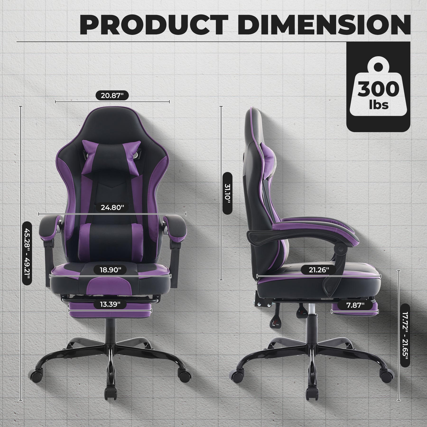 Black & Purple Gaming Chair | Ergonomic w/ Footrest, Massage Lumbar & 300lb Capacity