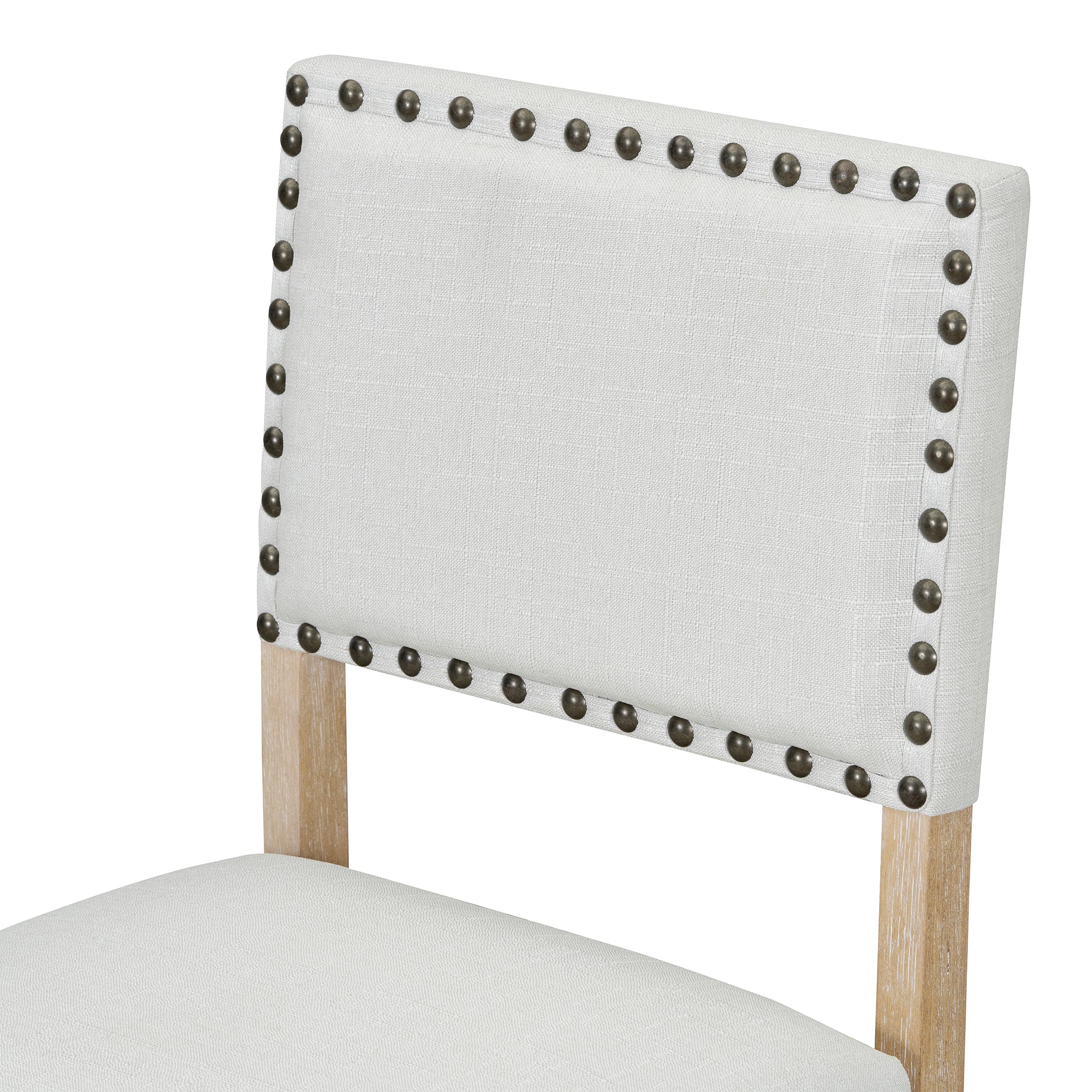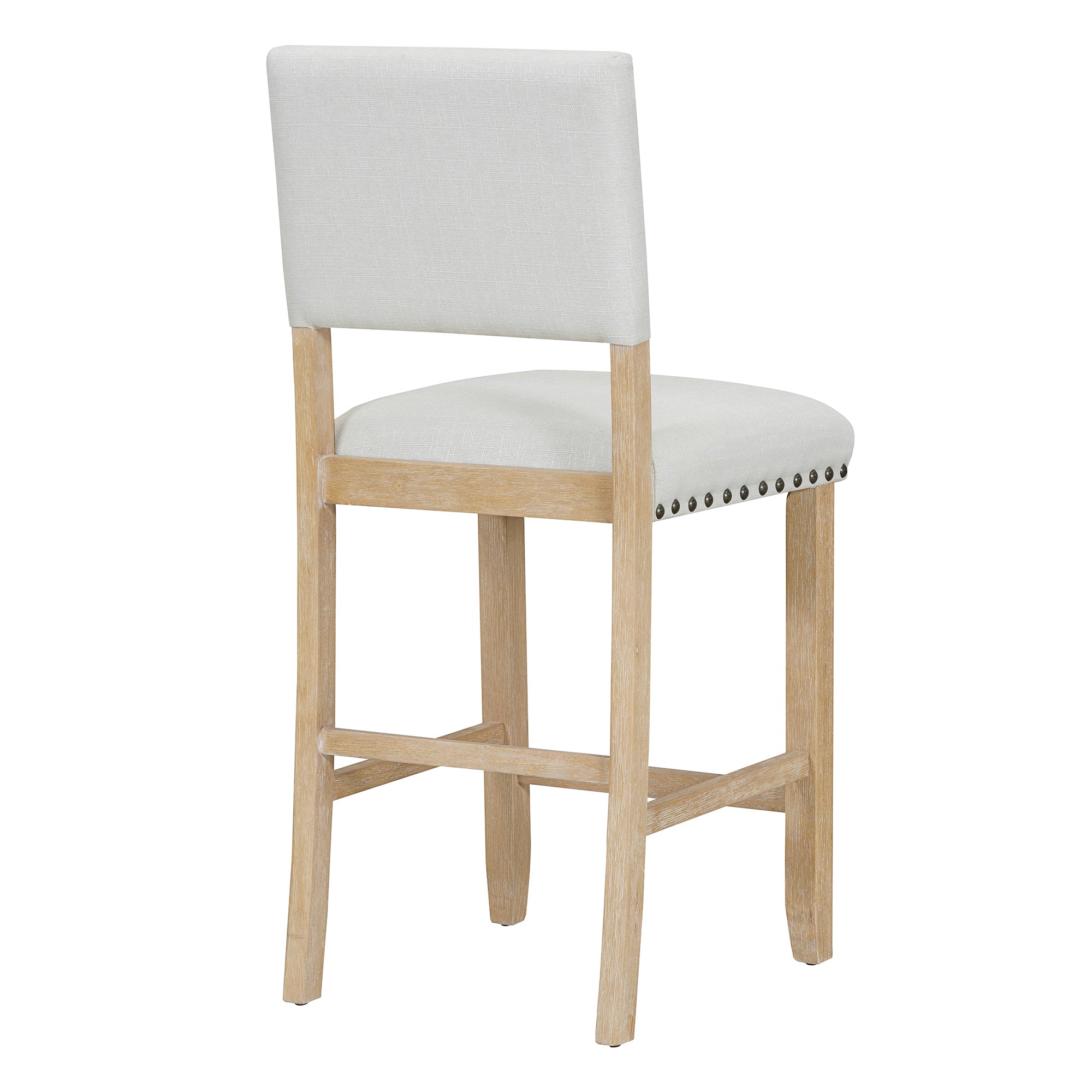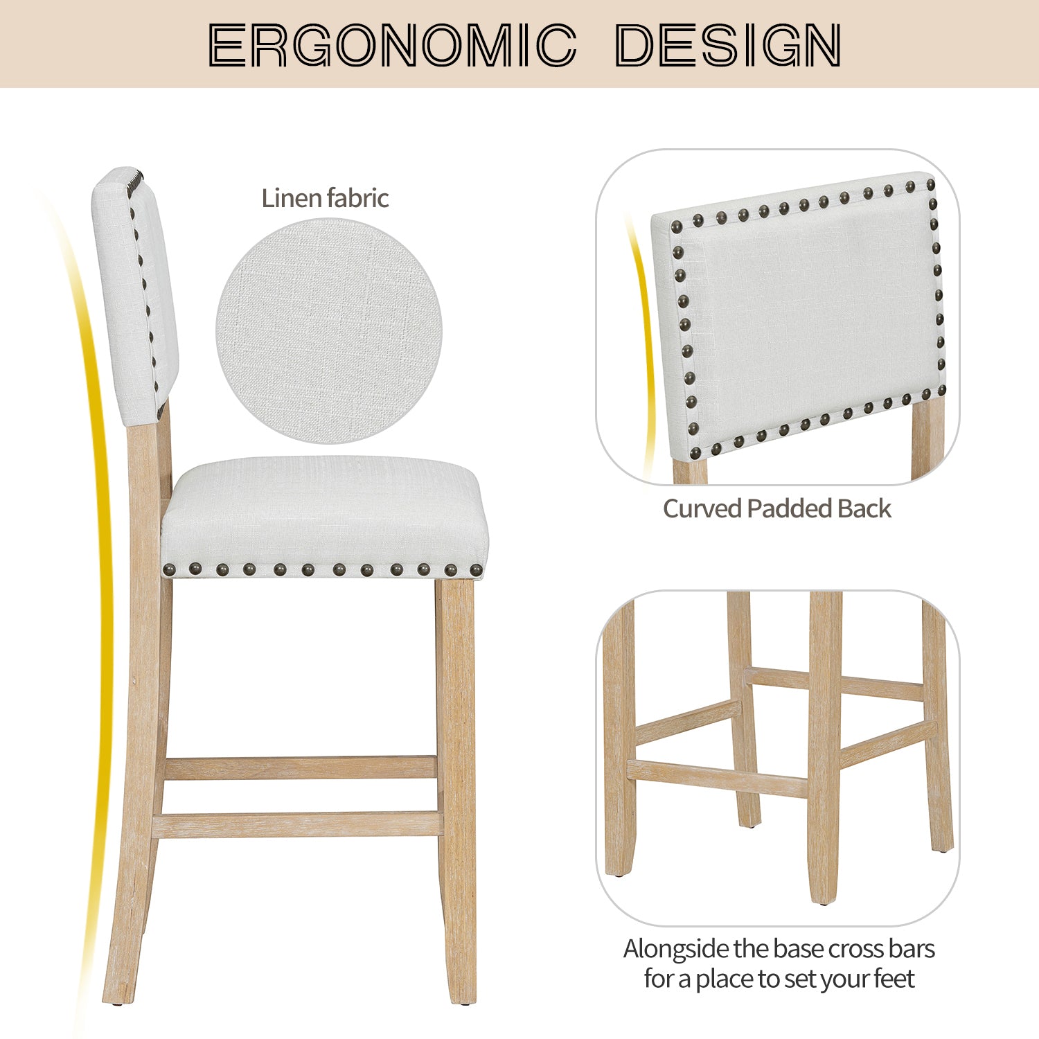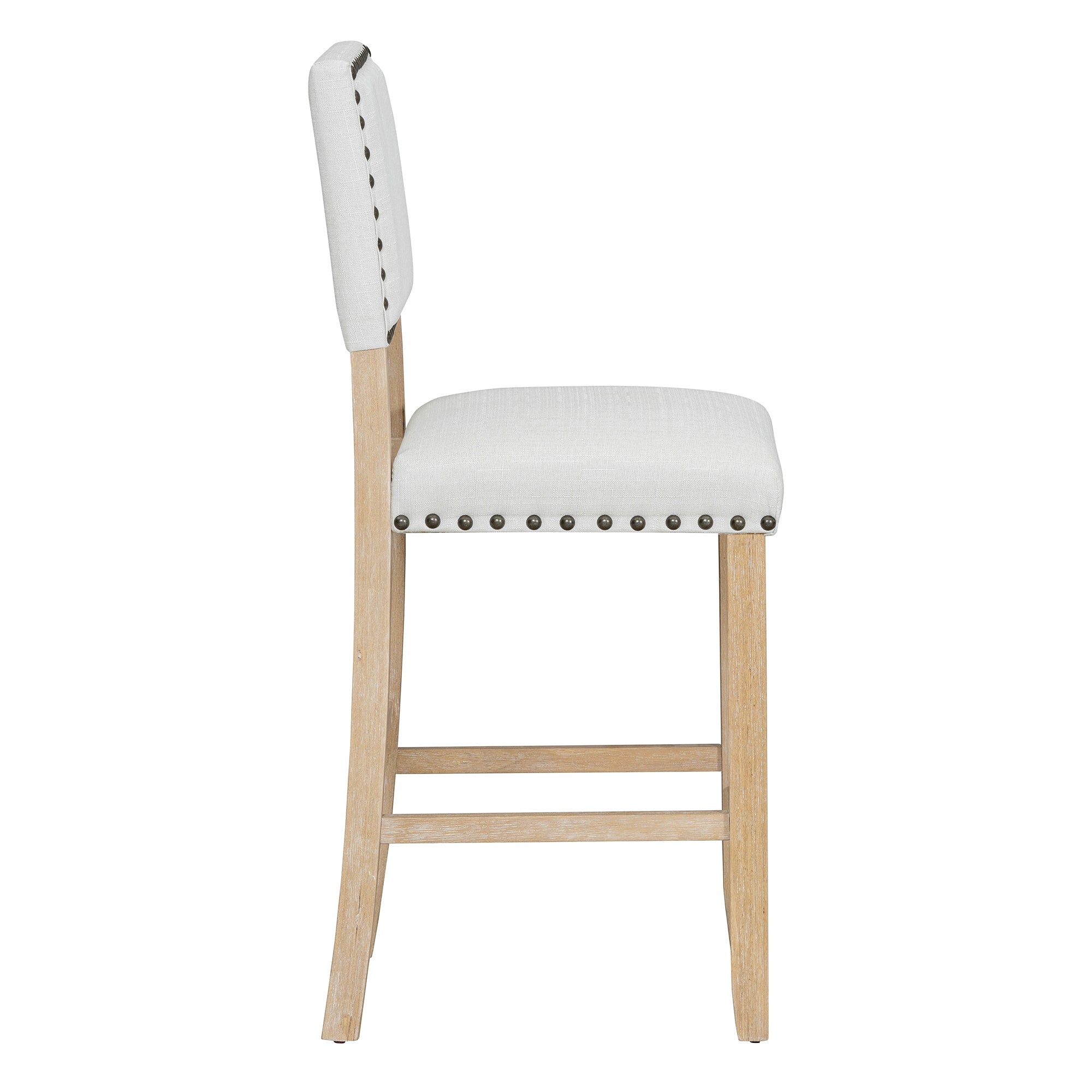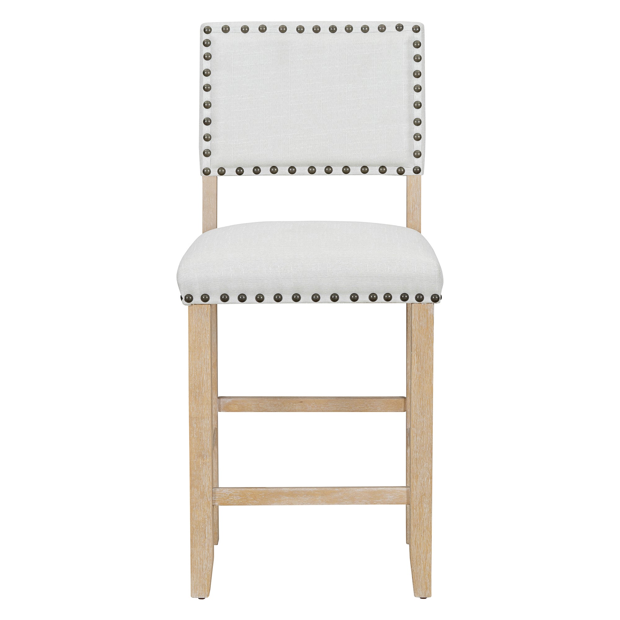 - Elegant Appearance: Add an air of elegance to your space with this classy 5-piece dining set including one wooden counter height table and four cushioned chairs with nail head trim in an eye-catching and contemporary natural wood wash and beige color scheme. Table Dimensions: 52"L x 27"W x 36.3"H. Chair Dimensions: 18"L x 19"W x 40.5"H.