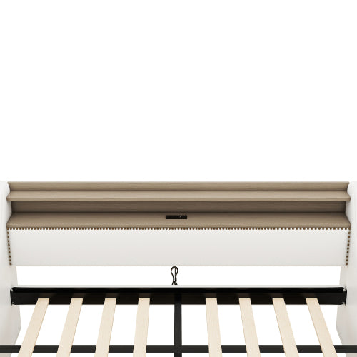 Premium Upholstered Design: Wrapped in elegant White PU Faux Leather, this daybed features a high, padded backrest and classic bronze nailhead trim, providing a sophisticated look and comfortable, couch-like seating during the day. (