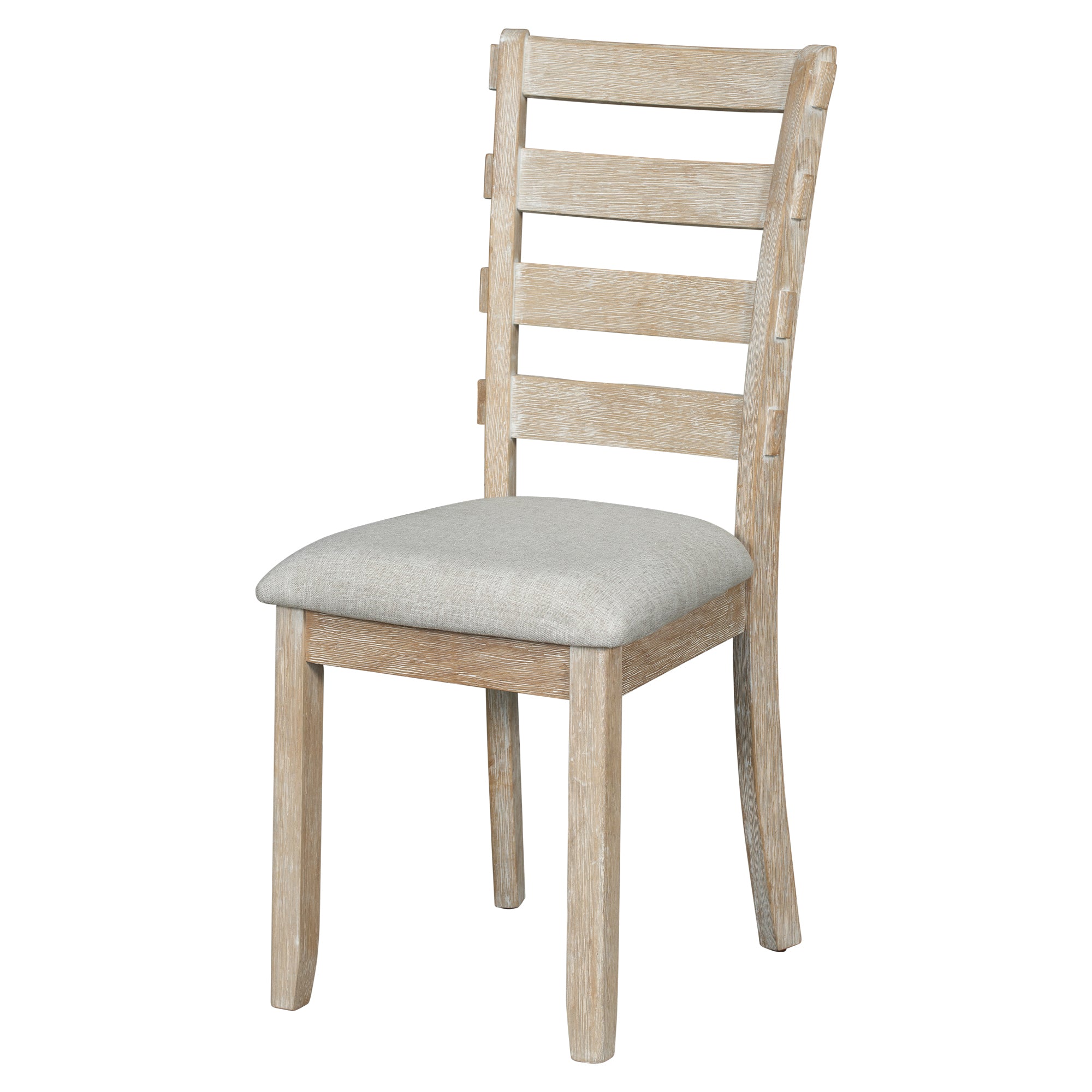 TREXM 6-Piece Rubber Wood Dining Table Set with Beautiful Wood Grain Pattern Tabletop Solid Wood Veneer and Soft Cushion (Natural Wood Wash)