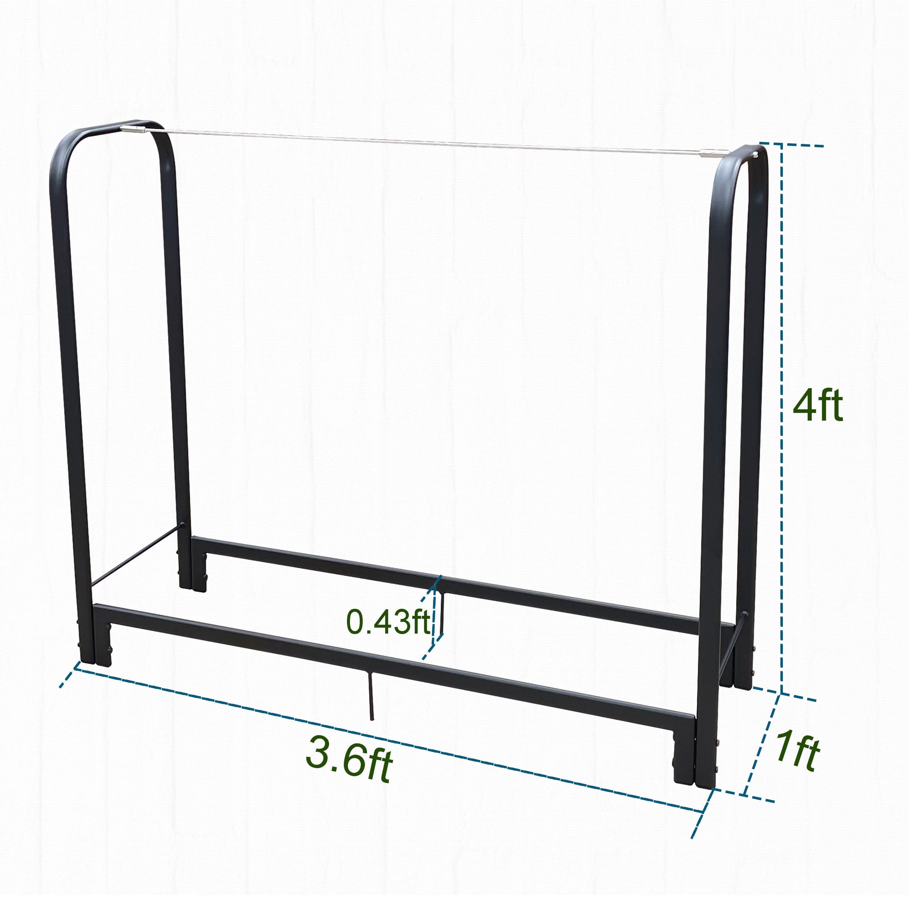 Artibear Firewood Rack Stand 4ft Heavy Duty Logs Holder for Outdoor Indoor Fireplace Metal Wood Pile Storage Stacker Organizer, Matte Black