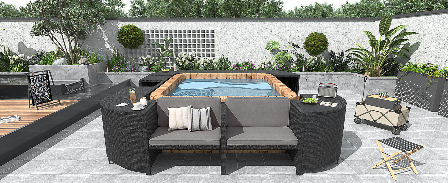 Quadrilateral sectional design with mini sofa for a perfect hot tub surround