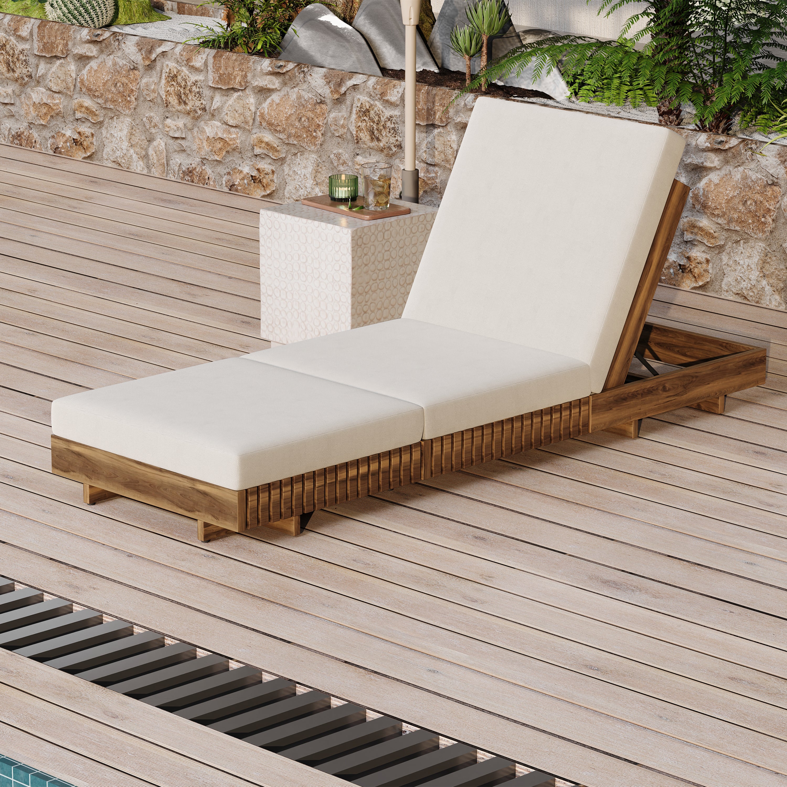 Elevate your outdoor living space with this elegant 2-Piece Acacia Wood Chaise Lounge Set, featuring durable solid wood construction and ultra-comfortable cream triple-fold cushions. Designed for relaxation and style, each chaise offers an adjustable reclining back and a smooth, natural finish that complements any patio, poolside, or garden setting.