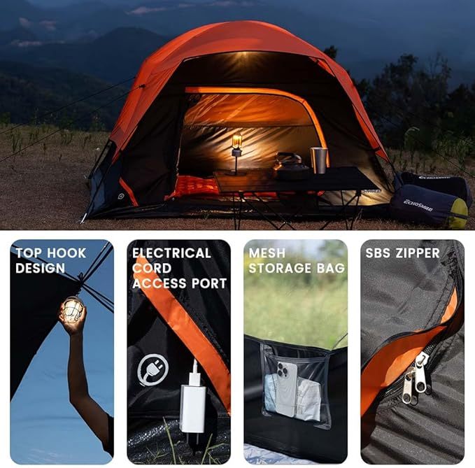 • Spacious & Versatile Design: Comfortably accommodates 2-4 people, making it ideal for small groups, couples, or families. Its dome shape maximizes interior space while ensuring stability in various weather conditions. Replaceable zippers and poles extend the tent's lifespan and reduce waste.