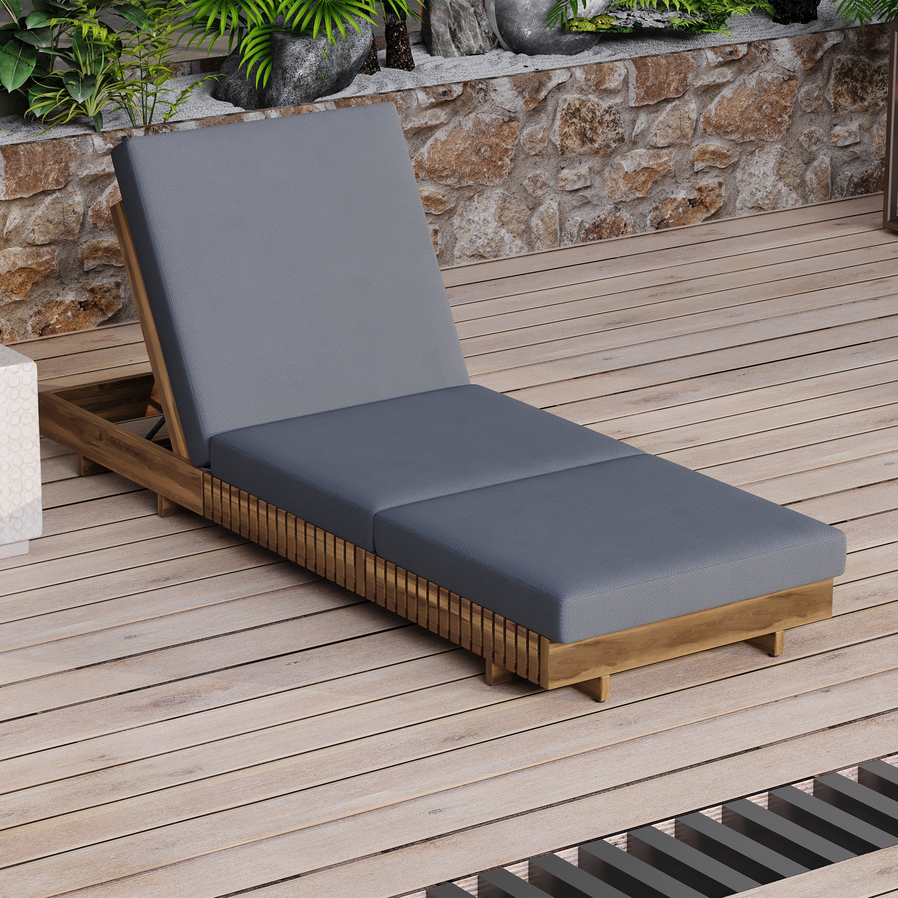 • RUSTIC SOLID WOOD CRAFTSMANSHIP:Crafted from premium Acacia solid wood with a rich teak finish, this lounge chaise showcases nature's raw beauty through its authentic wood grain and durable construction. Acacia's natural weather-resistant properties ensure long-lasting performance, while the hand-applied finish enhances its rustic charm and protects against outdoor elements.
