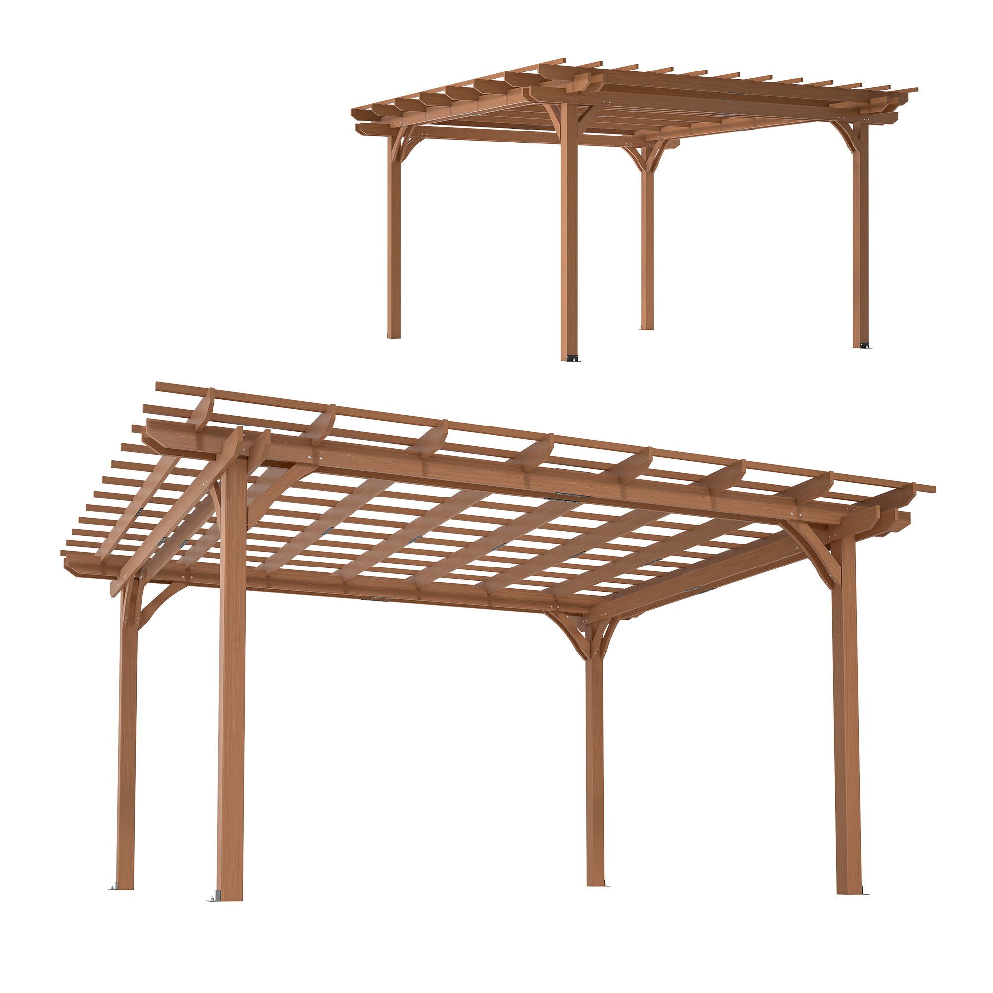 Create a stunning outdoor retreat with the 12' x 14' Outdoor Wood Pergola, designed to add both beauty and function to your garden or patio. Made from durable, high-quality wood with a rich brown finish, this pergola offers the perfect support for climbing plants, vines, and flowers, creating a lush, shaded area for relaxation. Ideal for outdoor dining, lounging, or as a focal point in your garden, the wooden patio gazebo is built to withstand the elements and enhance your landscape. Whether you're hosting gatherings, enjoying your garden, or simply relaxing in the shade, this stylish pergola brings elegance and versatility to any outdoor space.