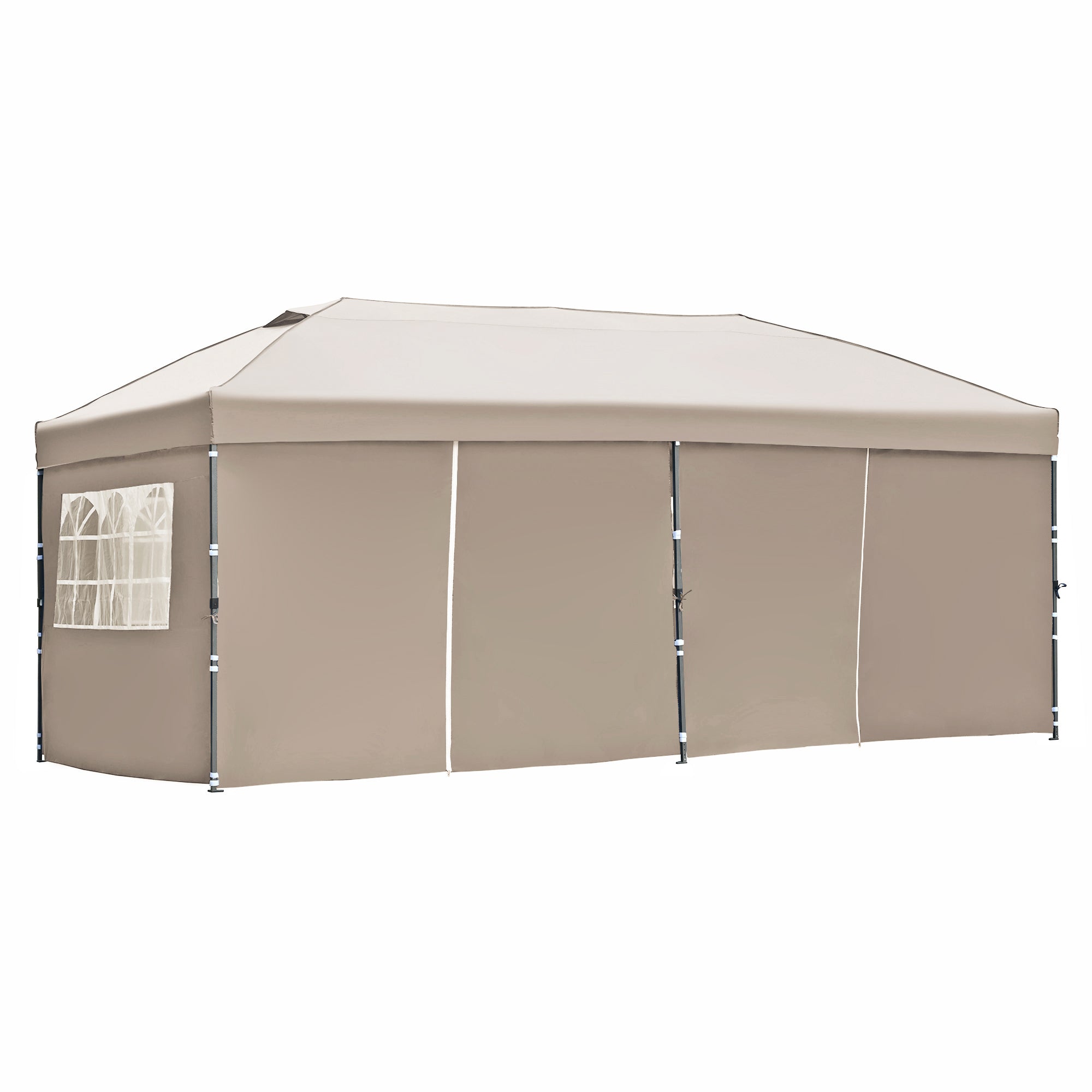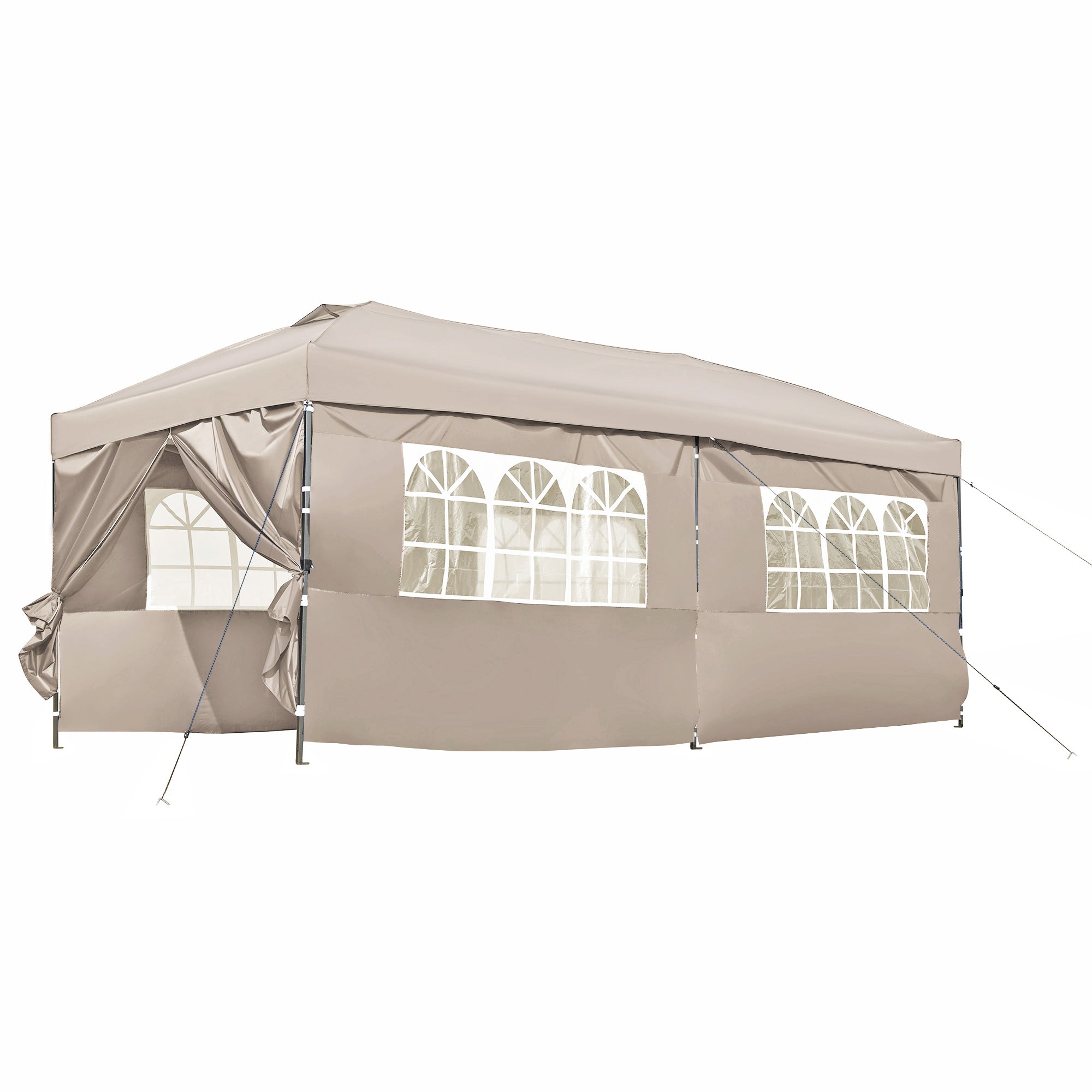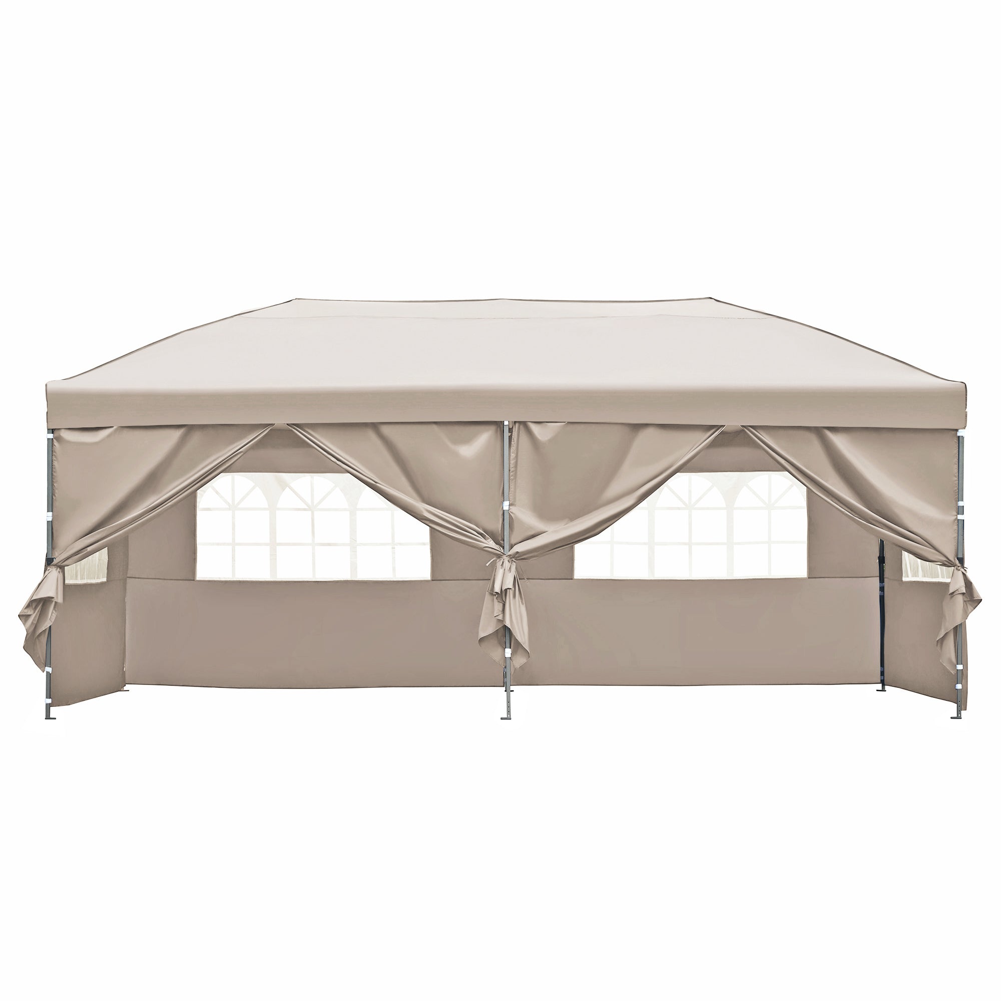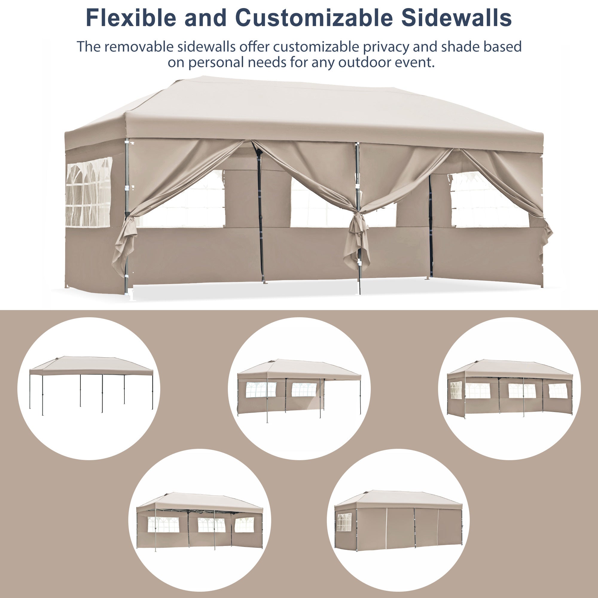 TREXM 10x20 Pop Up Canopy with Sidewalls, Outdoor Canopy Tent Heavy Duty for Backyard, Wedding Party Tent for Parties with Wheeled Bag (Khaki)