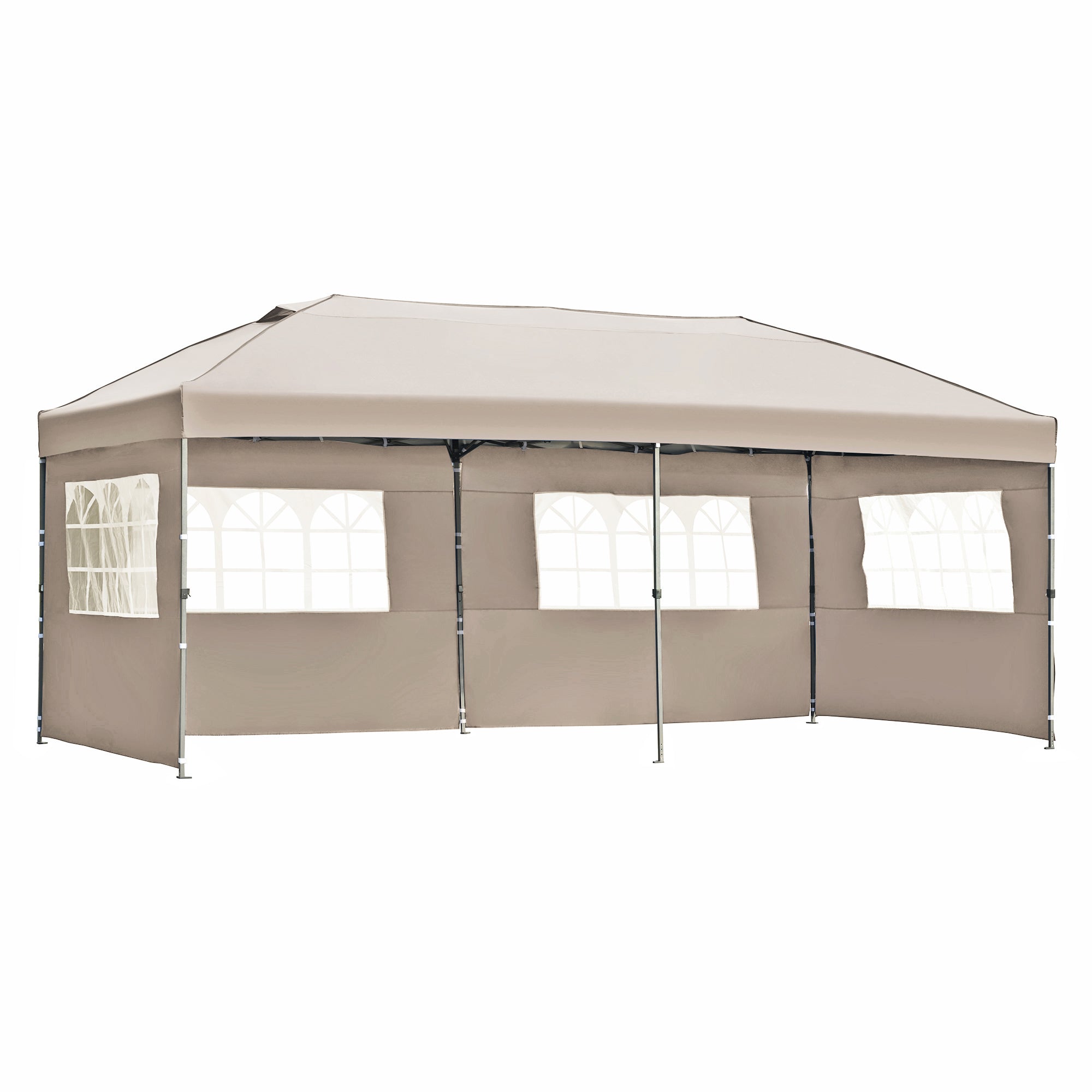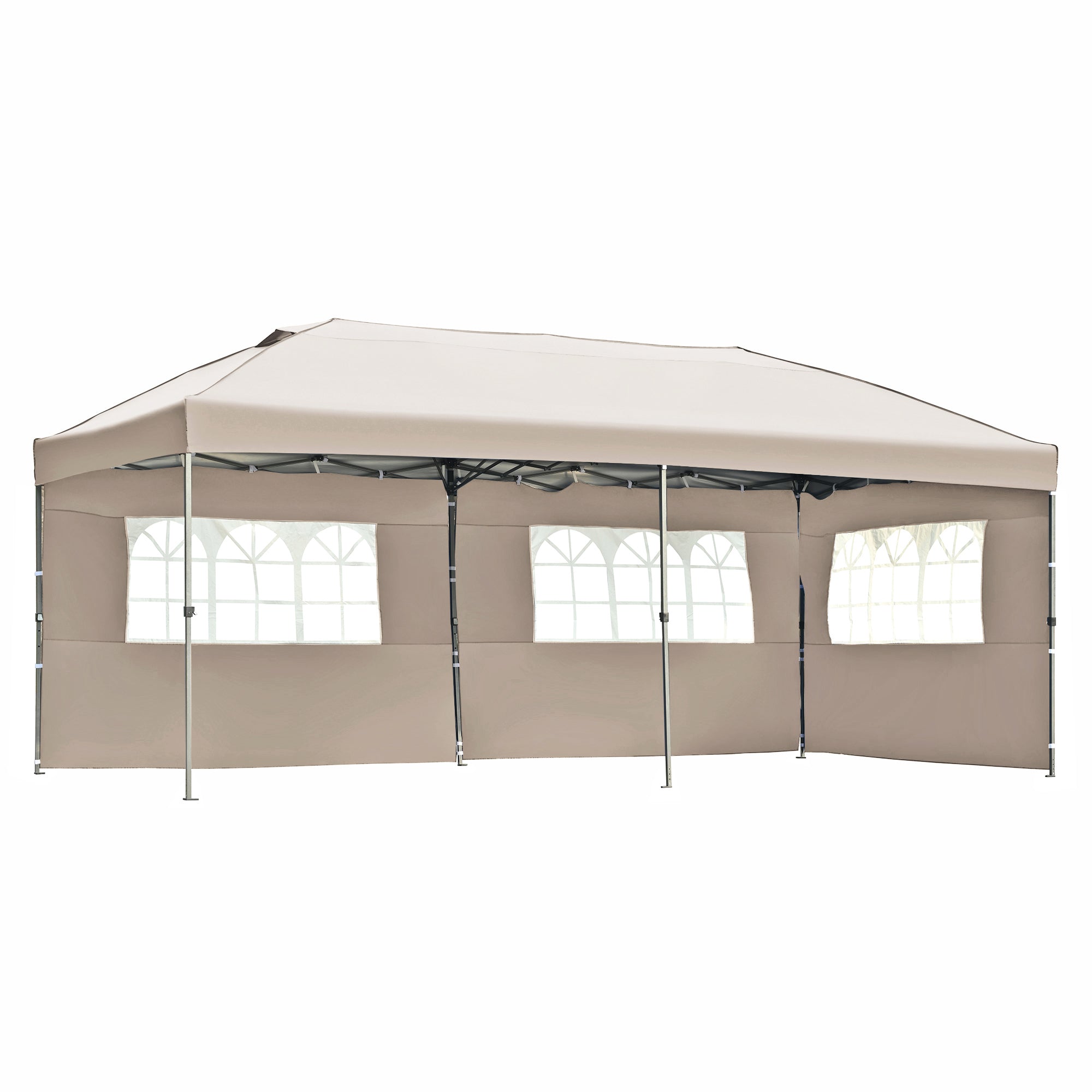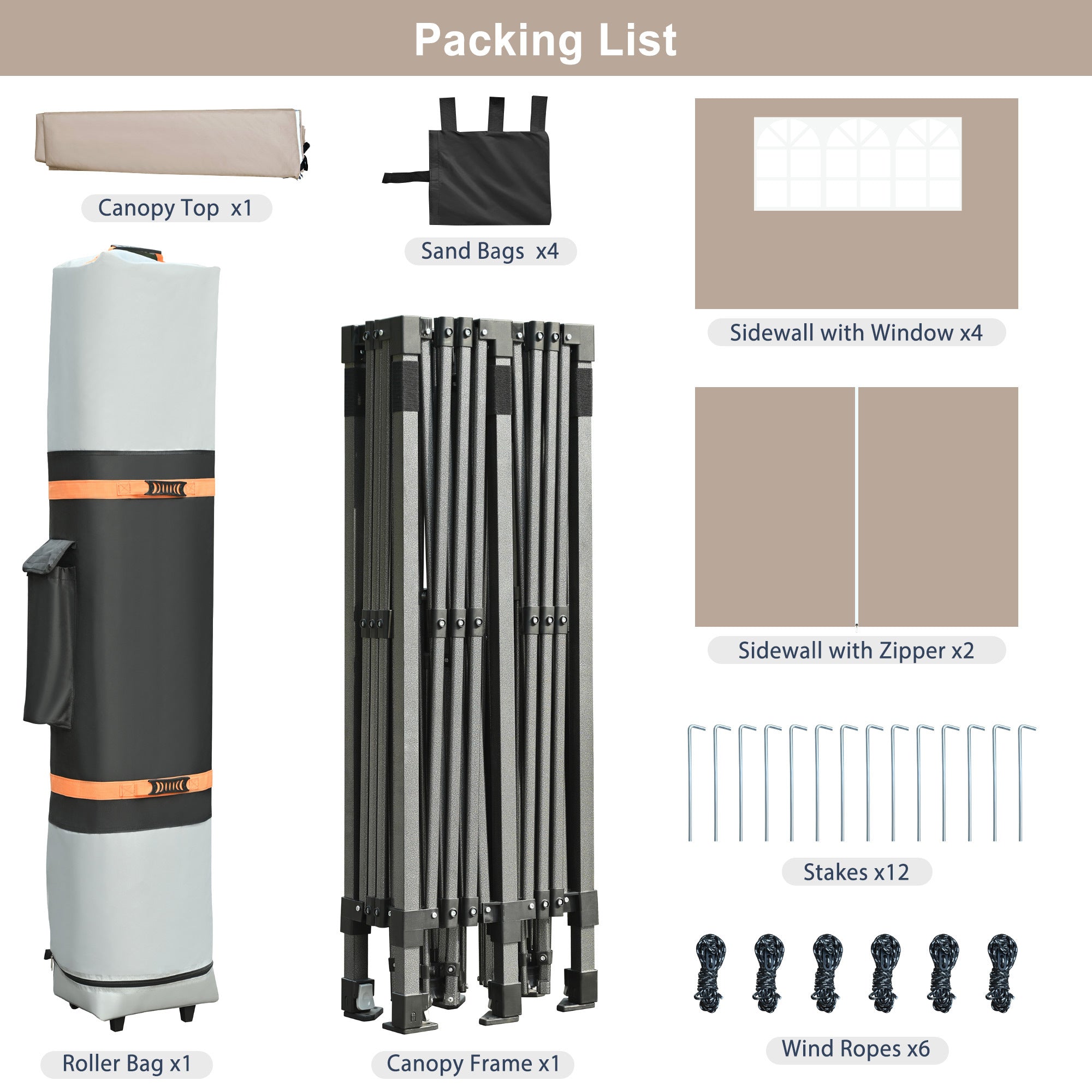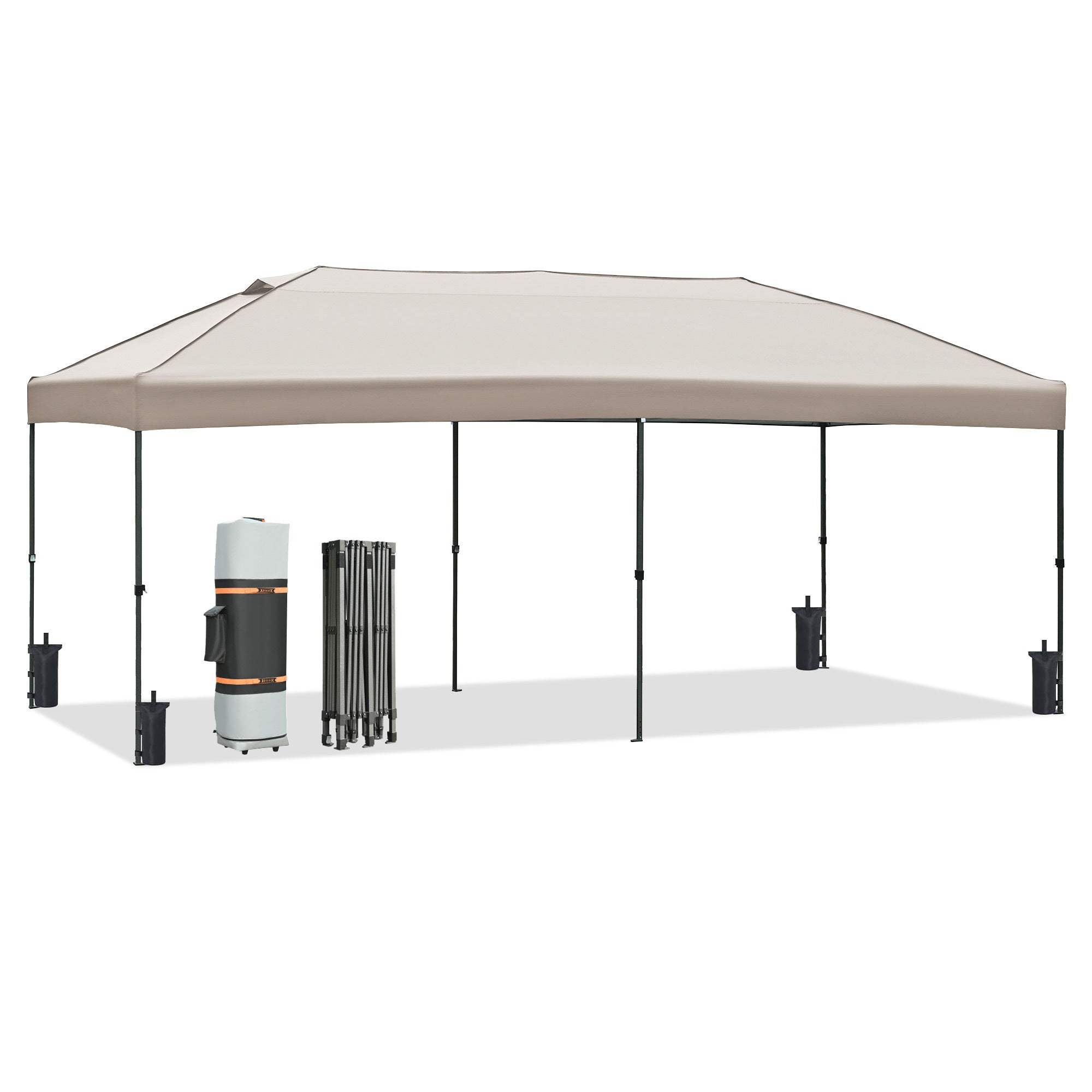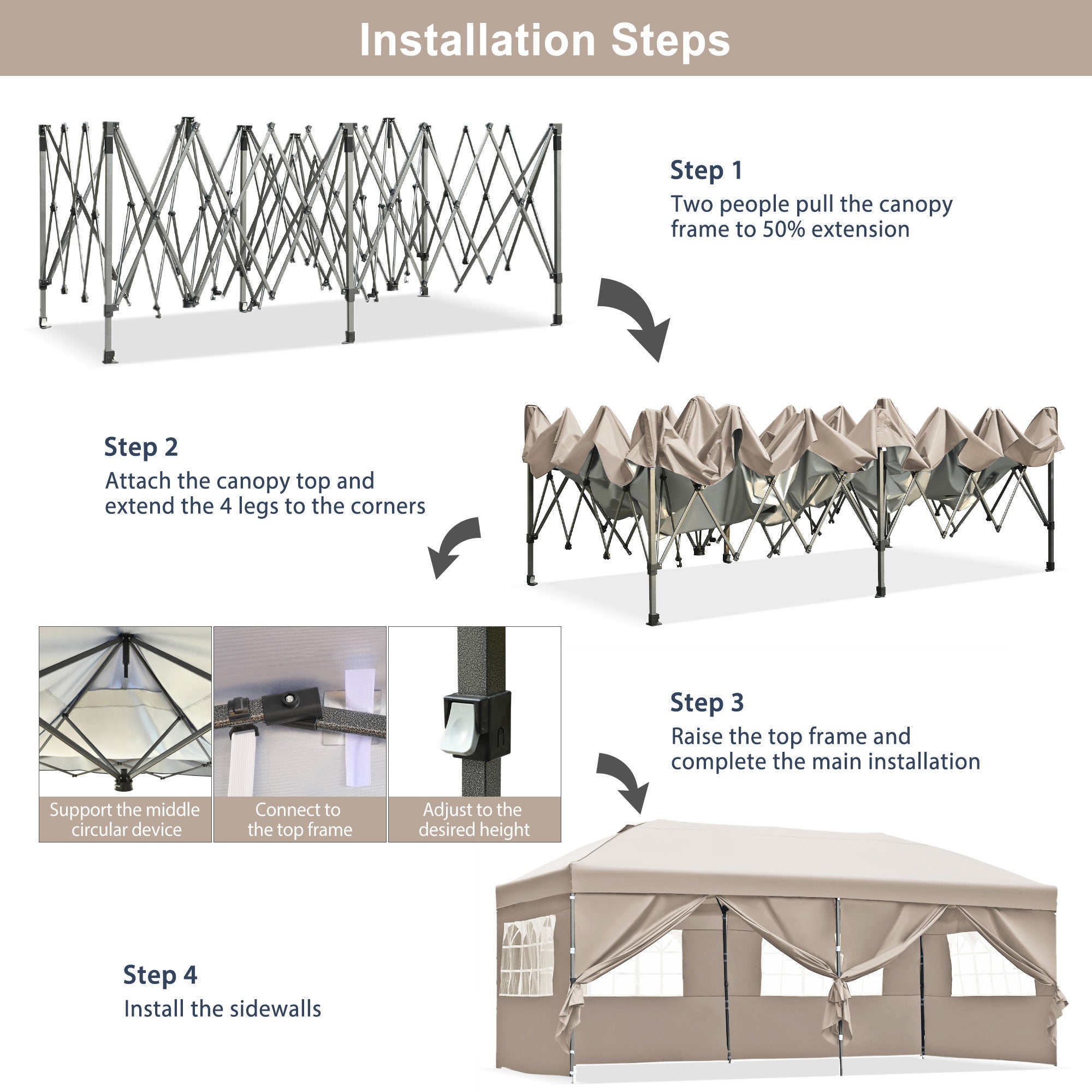 TREXM 10x20 Pop Up Canopy with Sidewalls, Outdoor Canopy Tent Heavy Duty for Backyard, Wedding Party Tent for Parties with Wheeled Bag (Khaki)