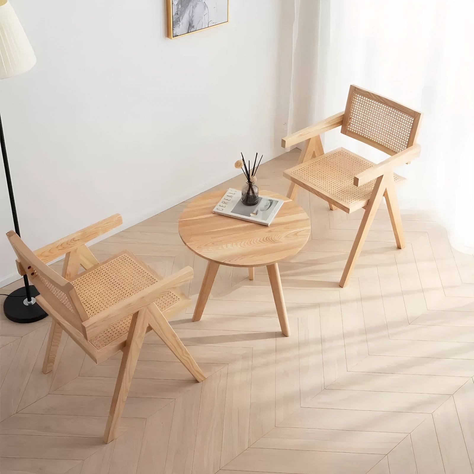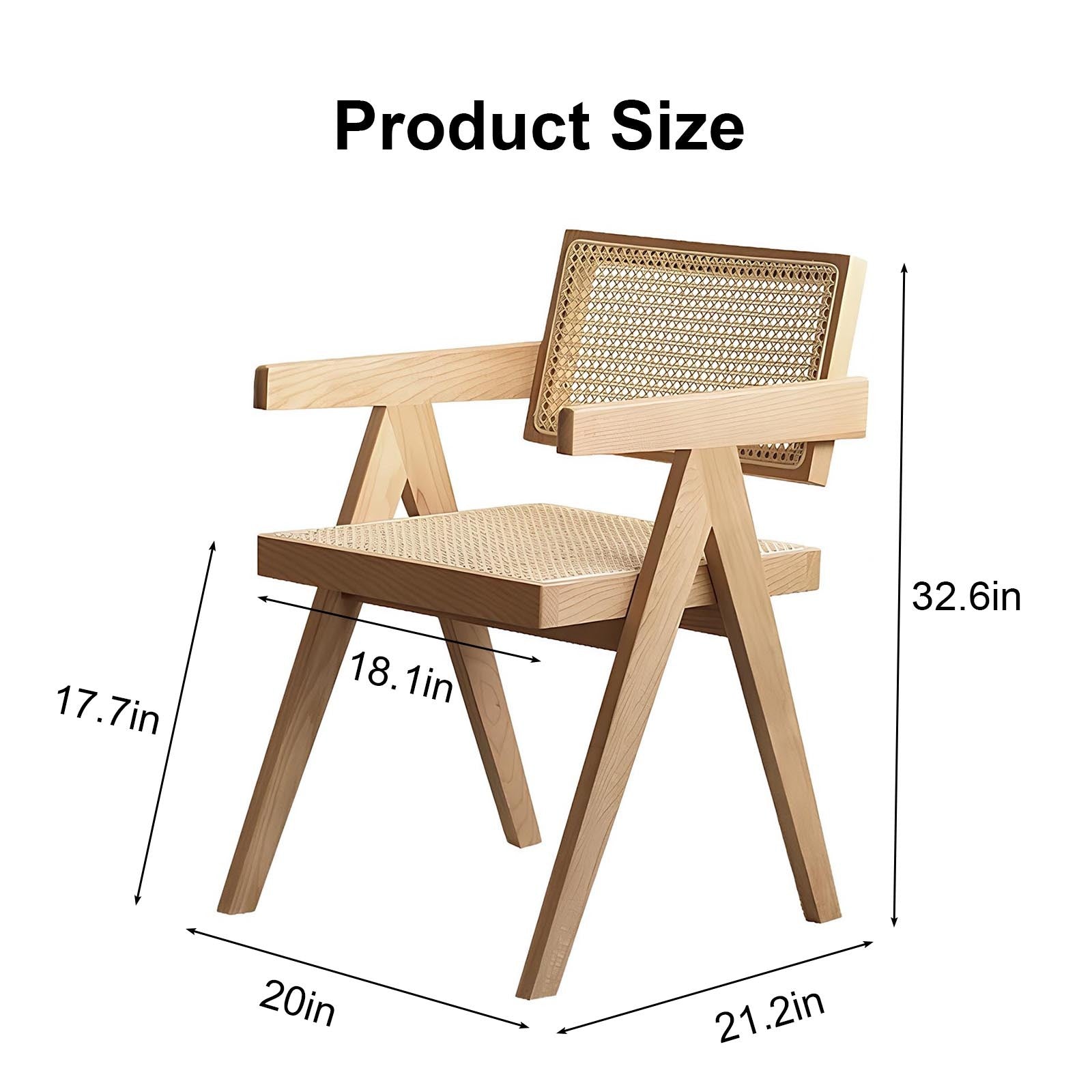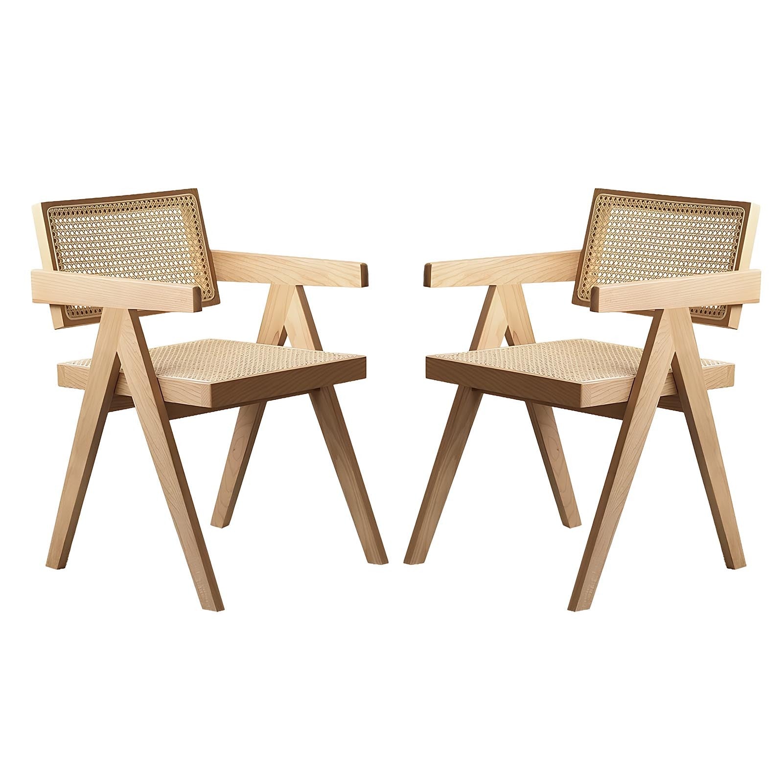 Modern Mid Century Dining Chairs Set of 2, Rattan Accent Chairs, Comfy Armchairs, Outdoor Wood Chairs with Armrest for Bedroom Living Room Reading Room Dining Kitchen, Wood Color