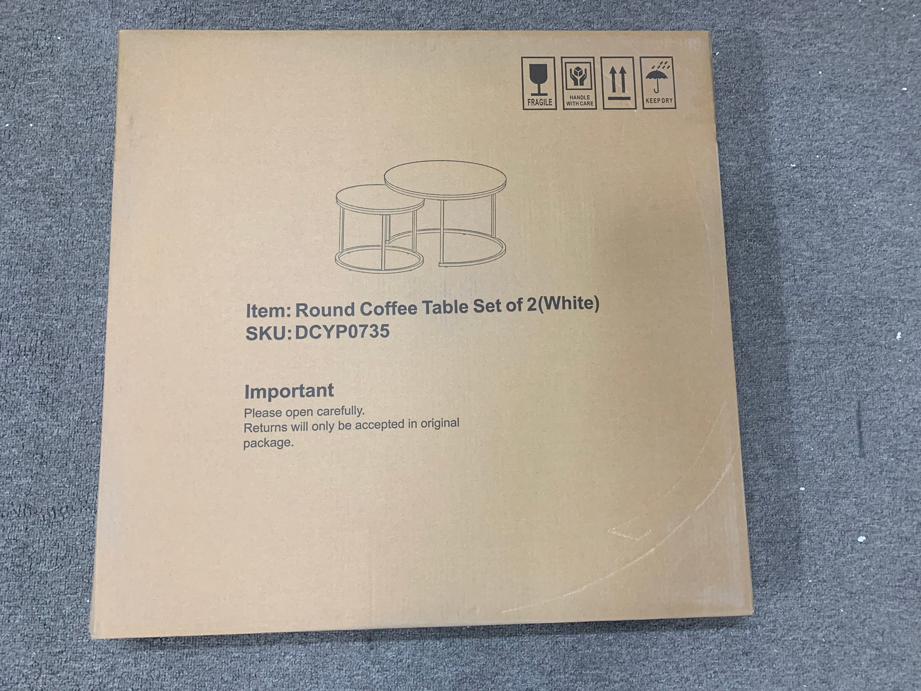Nesting Coffee Table Set of 2, 27.6inch Round Coffee Table Wood Marble Pattern Top with Sturdy Metal Frame, End Table Side Tables for Living Room Bedroom Balcony Yard (White)