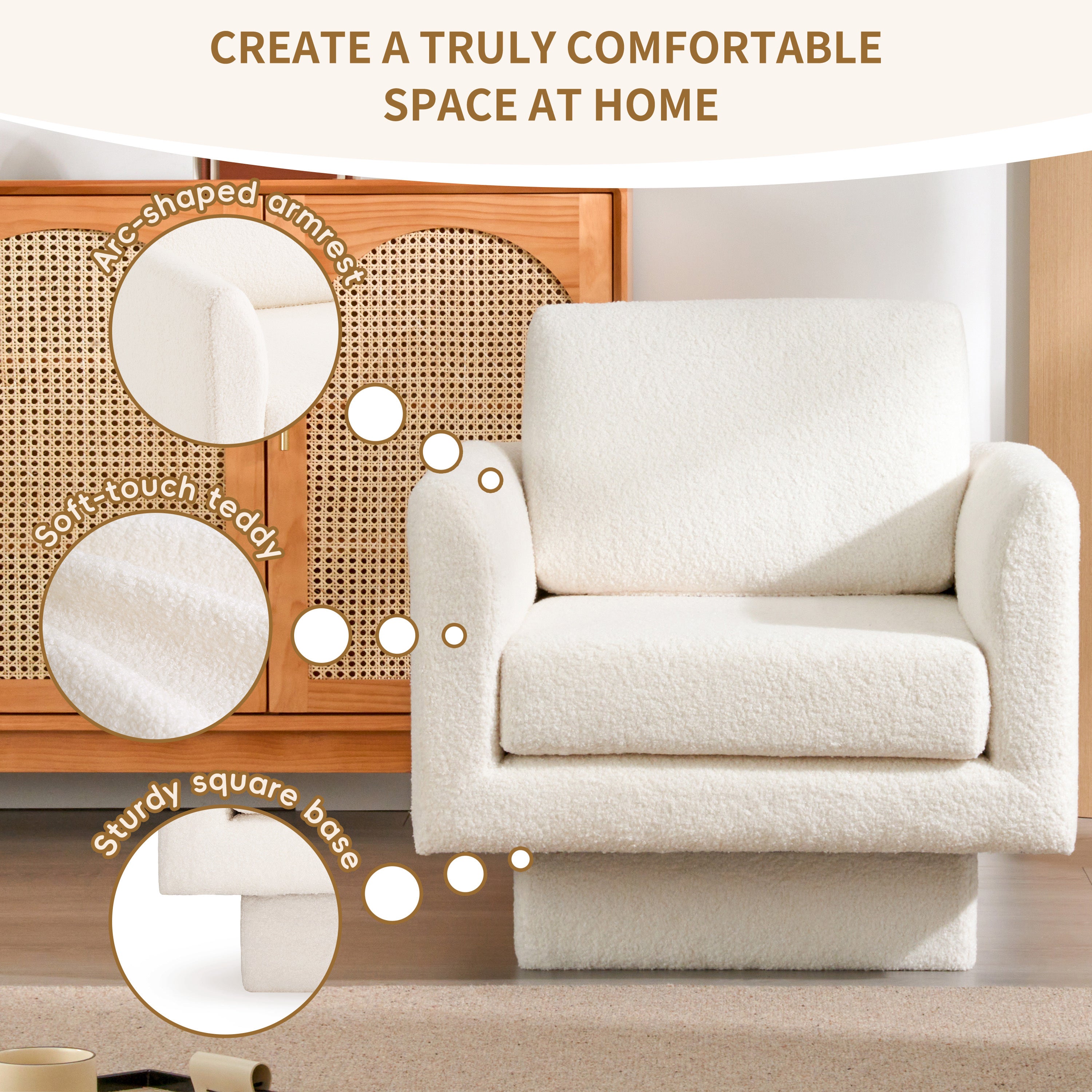 [New+Video]360° Modern Swivel Accent Chair,30" W Teddy Sherpa Round Armchair,Thick Padded Single Lounge Sofa,Upholstered Comfy Barrel Chair,Reading Club Chair for Living Room,Nursery,Bedroom,4 Colors