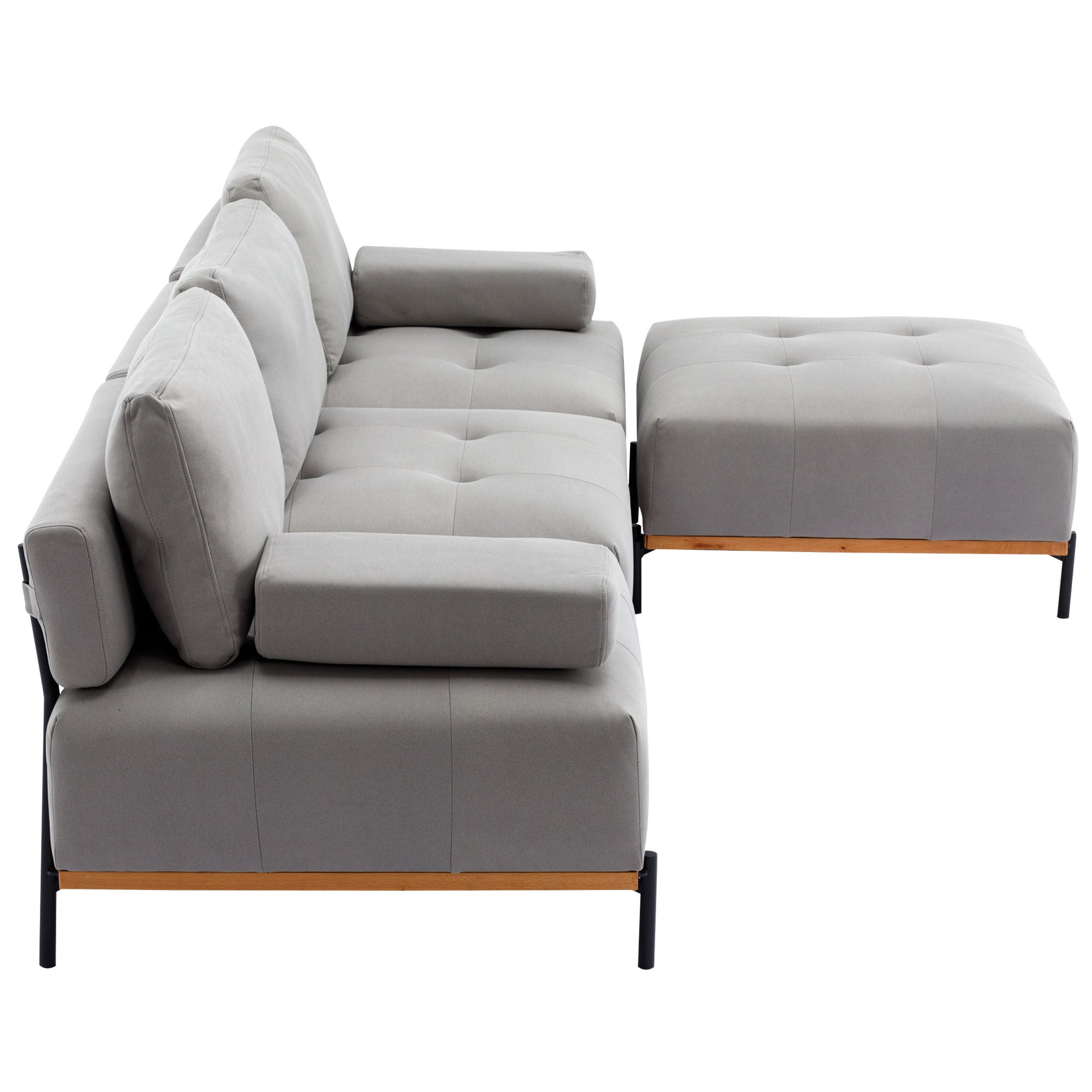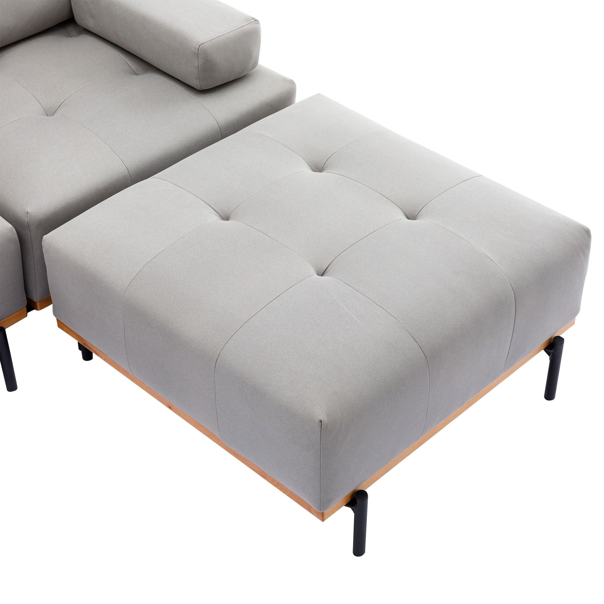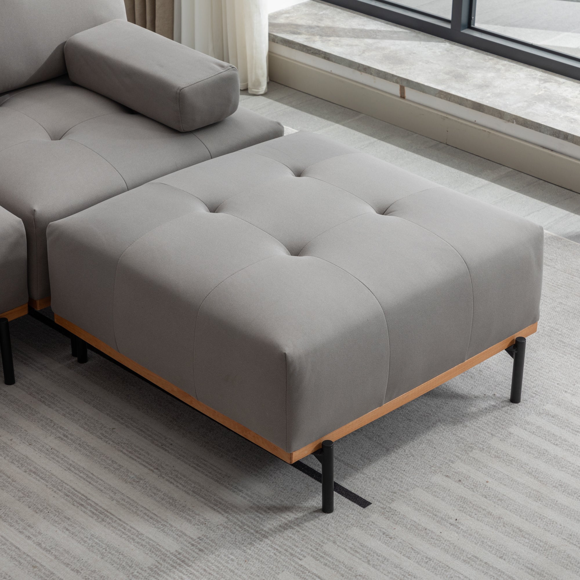 100.7'' L-Shape Sectional Sofa 3-Seater Couches with a Removable Ottoman, Comfortable Fabric for Living Room, Apartment, Grey