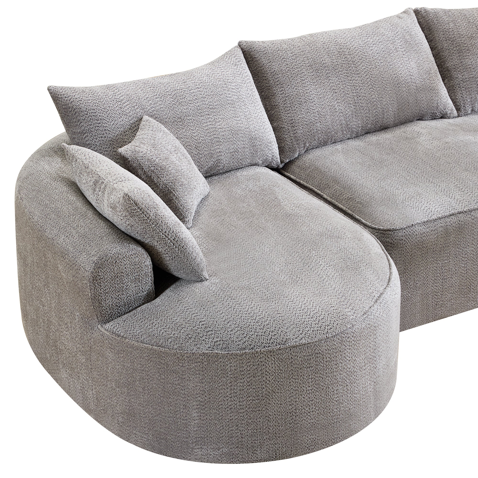 124.5" Modern Compressed Boneless Sofa | Grey Chenille Fabric | High-Resilience Sponge Filling | Modular Couch w/ 3 Back Pillows & 4 Throw Pillows | Extra Large Living Room Seating (NO Assembly Required)