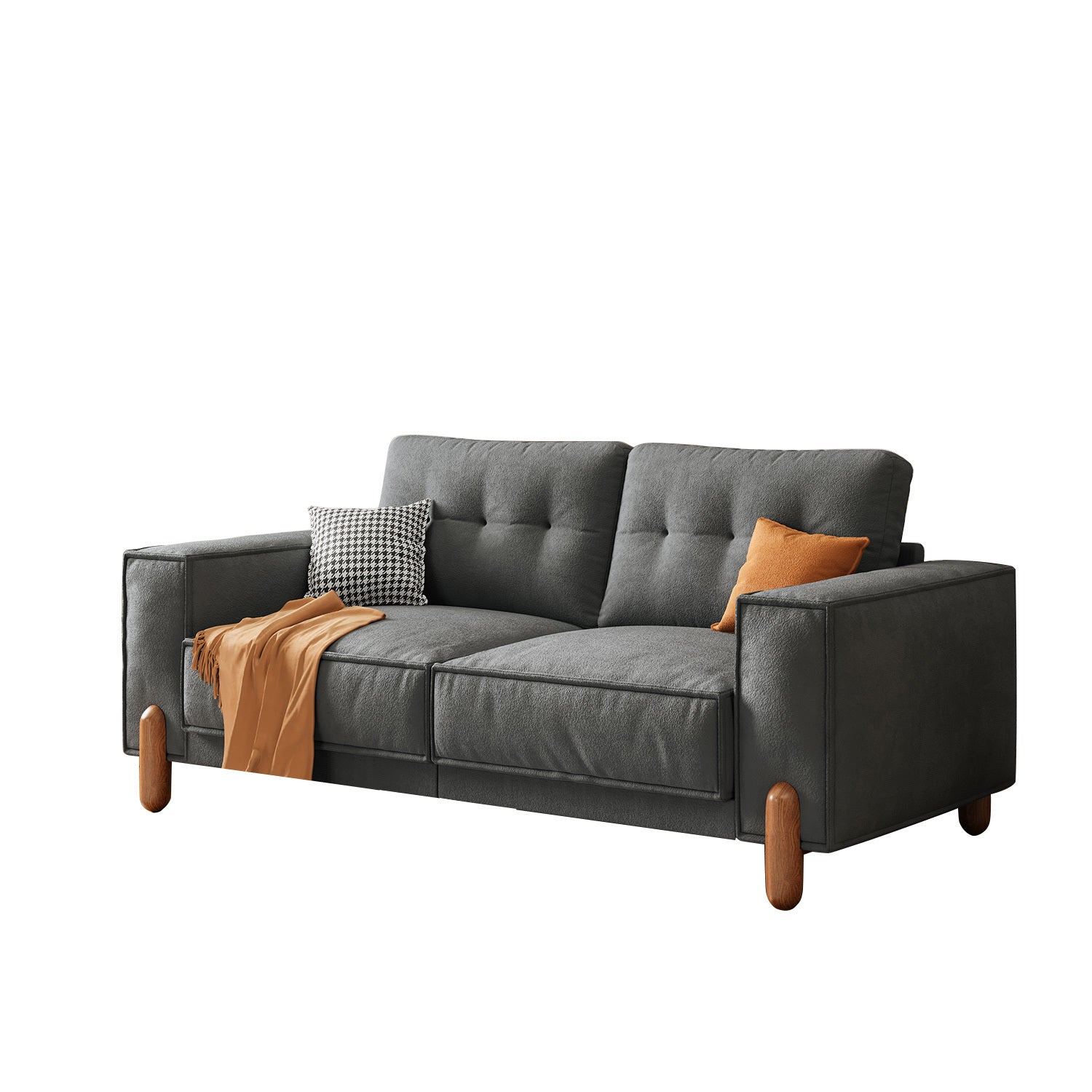 Elevate your living space with this stylish Modern Fabric Upholstered Sofa, designed to bring both comfort and sophistication to your home. Featuring a classic tufted design and square arms, this couch combines timeless appeal with contemporary flair. Built on four solid wood legs, it offers sturdy support and long-lasting durability. Perfect for any living room, office, or apartment, this sofa includes two decorative pillows for added comfort and style. Whether you're relaxing or entertaining guests, this versatile sofa is an ideal choice for modern interiors.