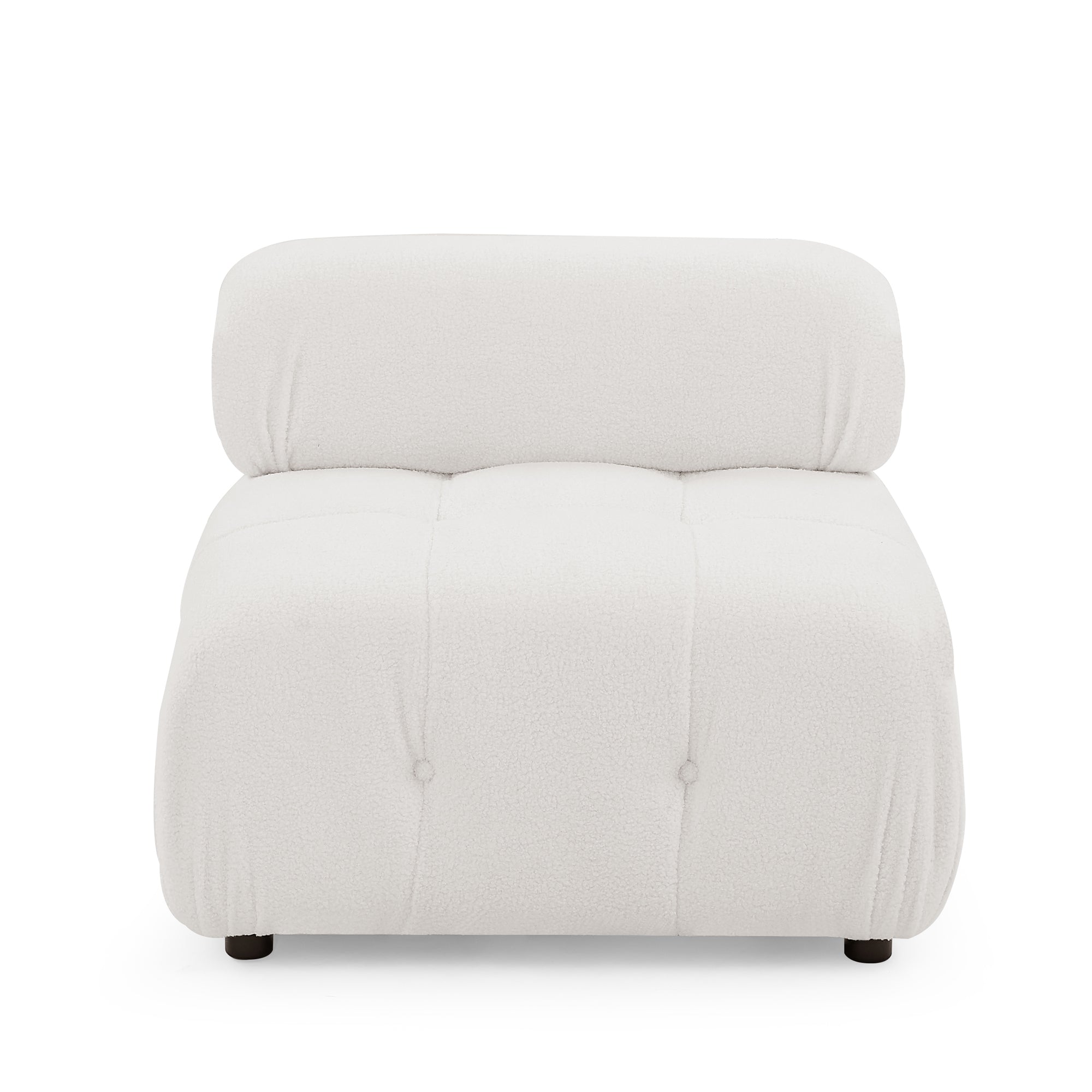 Transform your living space with the Modular Sectional Sofa in Ivory Teddy Fabric. Featuring a stylish button-tufted design, this L-shaped couch is the perfect blend of comfort and elegance. The modular, DIY combination allows you to customize the sofa to suit your space and preferences, providing flexibility for any room layout.