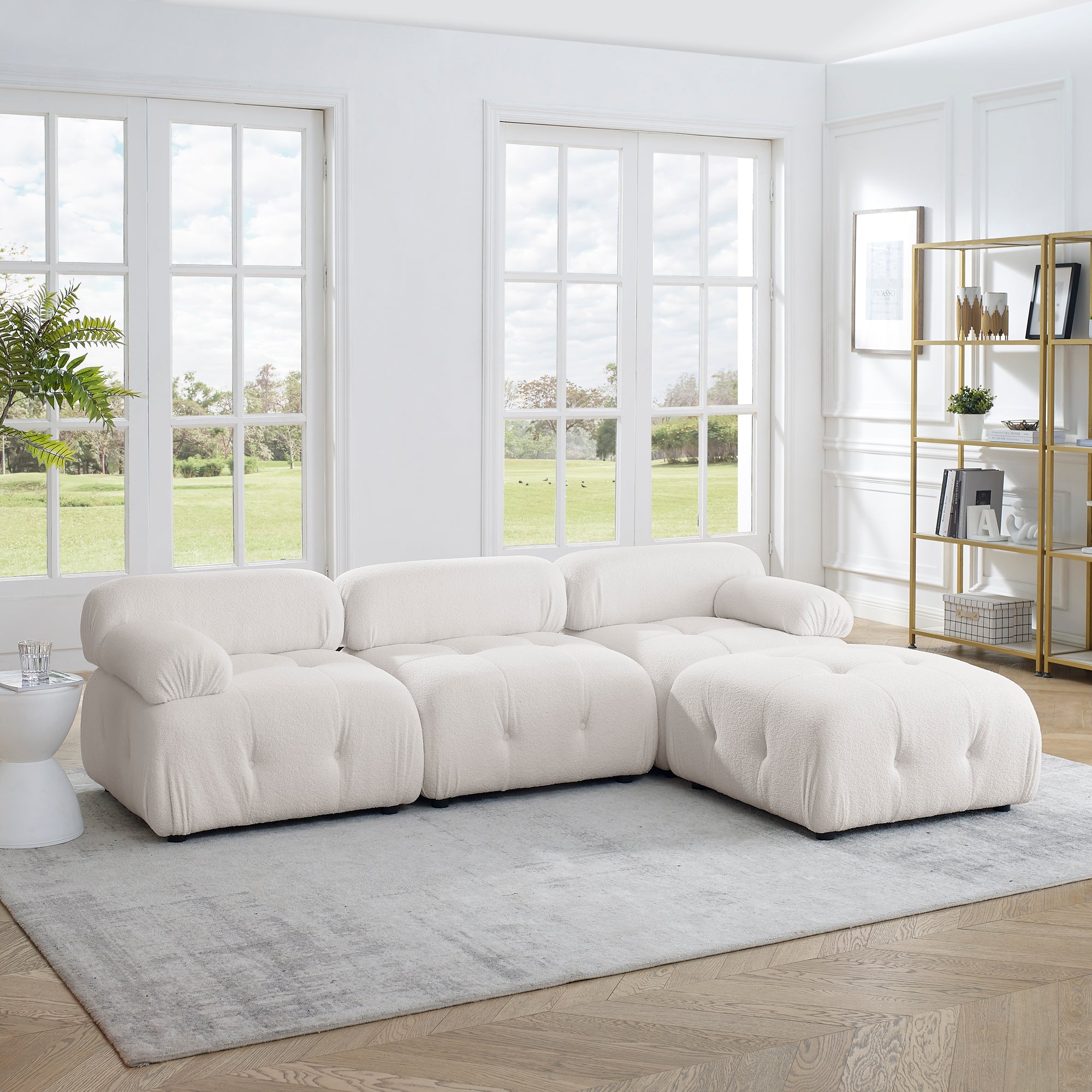 Modular Sectional Sofa – Button Tufted Design, DIY Combination, L-Shaped Couch with Reversible Ottoman, Ivory Teddy Fabric