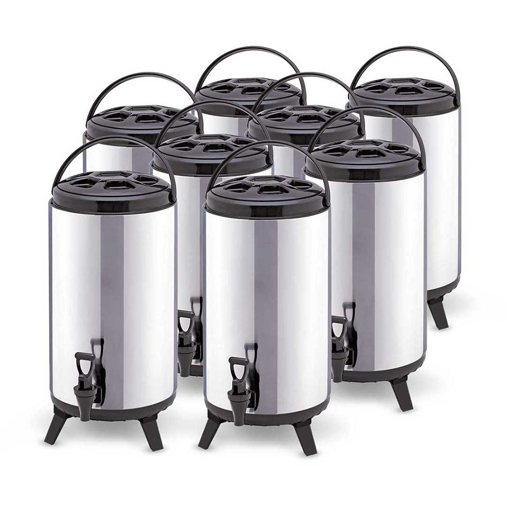 Features: With the unique and bright appearance, luxuriant style, not easily deformed, invulnerability to breakage and easy to clean appearance. Made with #304 stainless steel, which will not rust, strong and durable. Heat-resisting temperature: 80 degrees, resistant to cold temperature: - 20 degrees Groove anti-clogging design to ensure that drinks will not accumulate at the bottom Heat preservation can be up to 6 hours, cold time can be up to 8 hours, with all kinds of delicious tea, cold, hot coffee, juice, keeping flavor. Tap is made of nylon resin, can heat temperature of 200 degrees. The tap can be used for a long time. Factors that will affect the changing of holding time is using it in a different environment, especially when in climate conditions (ambient temperature whether it's filled, or preheating, etc.) The insulated temperature for 12 hours is 93C which will slowly decrease to 35C, especially in high-temperature degrees that only last for a few hours. Using indoors is highly recommended. The insulator cannot keep the liquid at a stable temperature. Its role is only to slow down the rate of temperature drop. Precautions for product use: The product cannot be filled with too much water. Do not tilt and place upside down. Do not soak the whole product in water for cleaning which will cause water absorption in the insulation layer. Can only be rinsed with running water or wiped with a cloth. After the product has been filled with tea, coffee and other beverages, please clean it in time and wipe off the water, so that beverage residue will not corrode the product. All insulated pots are not allowed to be heated on Fire. Specifications: Material: Stainless Steel Dimension: 8L , packing box dimensions are 27*27*39cm,weight 2.5kg 10L, packing box dimensions are 27*27*43cm,weight 3kg 12L, packing box dimensions are 27*27*48cm,weight 3.5kg Usage: Home Cooking Commercial Package Includes: 1 x Stainless Steel Tea Barrel