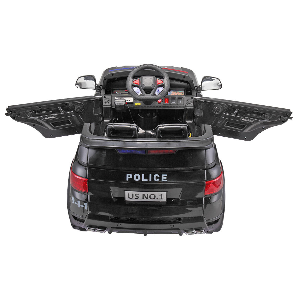 - Police Car: Well-designed to fulfill your little one's dream of becoming policeman. The flashing light, siren, megaphone and police signs offers authentic experience to your children.