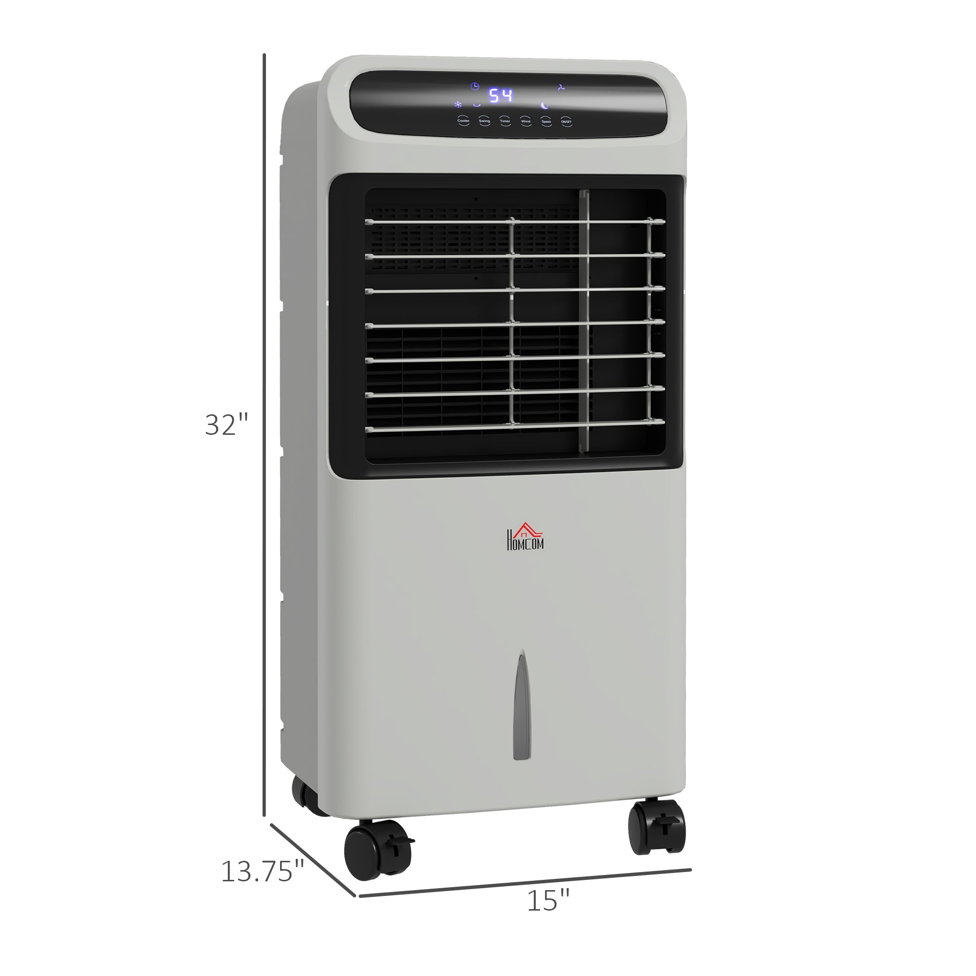 Stay cool and comfortable with the HOMCOM 32" Evaporative Air Cooler, a 3-in-1 portable solution combining a fan, air cooler, and humidifier in one sleek unit. Featuring a large 3.2-gallon water tank, this gray swamp cooler delivers refreshing airflow with 60° oscillation, 3 fan speeds, and 3 cooling modes. Ideal for home or office use, it includes a 12-hour timer, remote control, and ice pack compatibility for enhanced cooling. Enjoy energy-efficient comfort with this versatile and easy-to-move cooling fan.