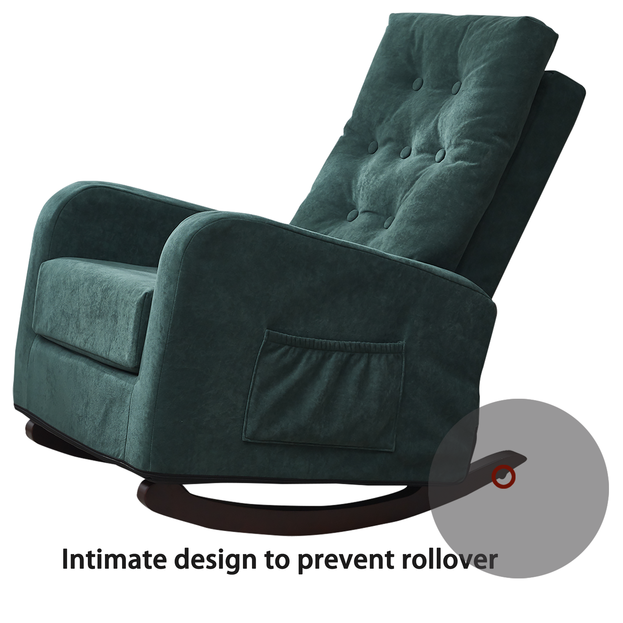 • Side pockets for storing handy items. High back supports head and shoulders