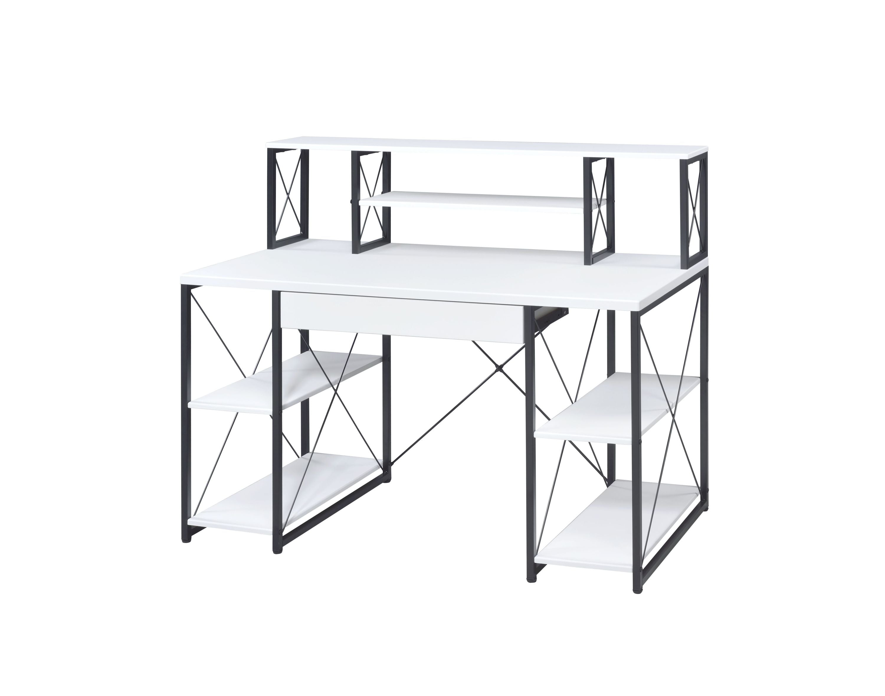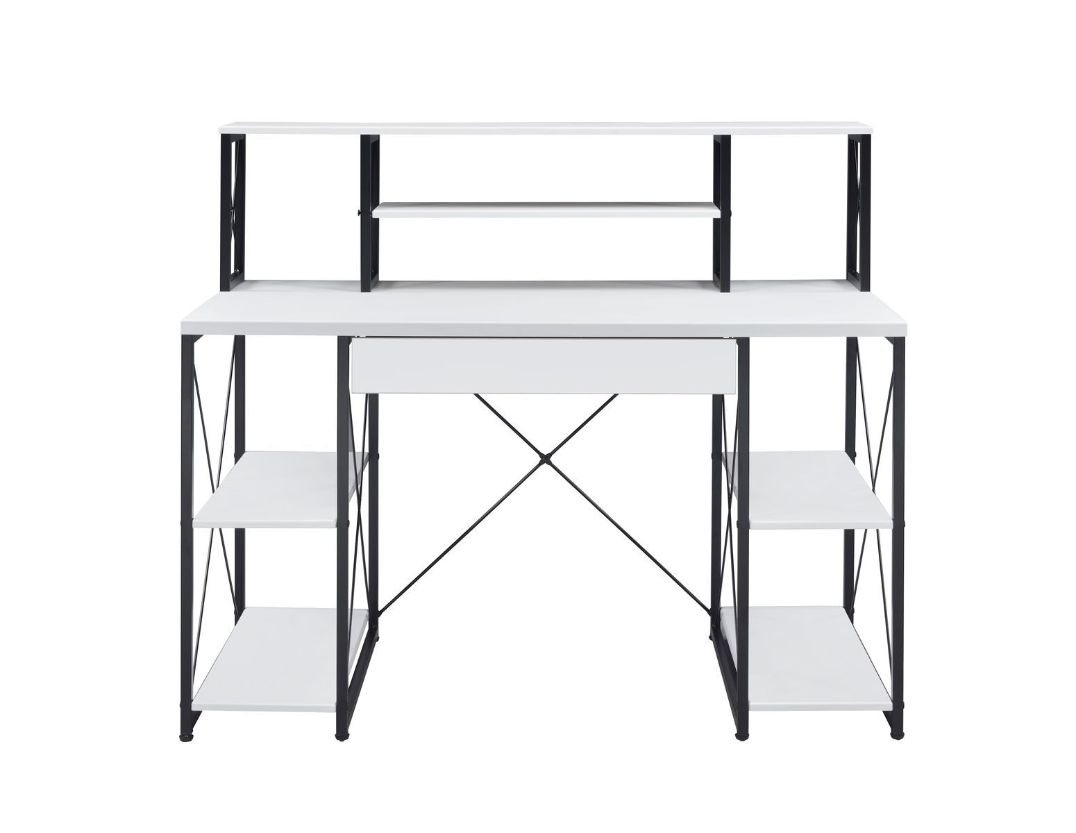 The ACME Amiel Desk (Model 92879) features a sleek and modern design, combining a white and black finish for a contemporary look. Perfect for any home office or workspace, this desk offers both style and functionality. With spacious storage options and a sturdy frame, it provides ample room for your computer, documents, and office supplies. The minimalist design ensures it complements various decor styles, making it ideal for creating an organized and stylish work environment. Whether in the office, bedroom, or living room, the ACME Amiel Desk is a versatile addition to any space.