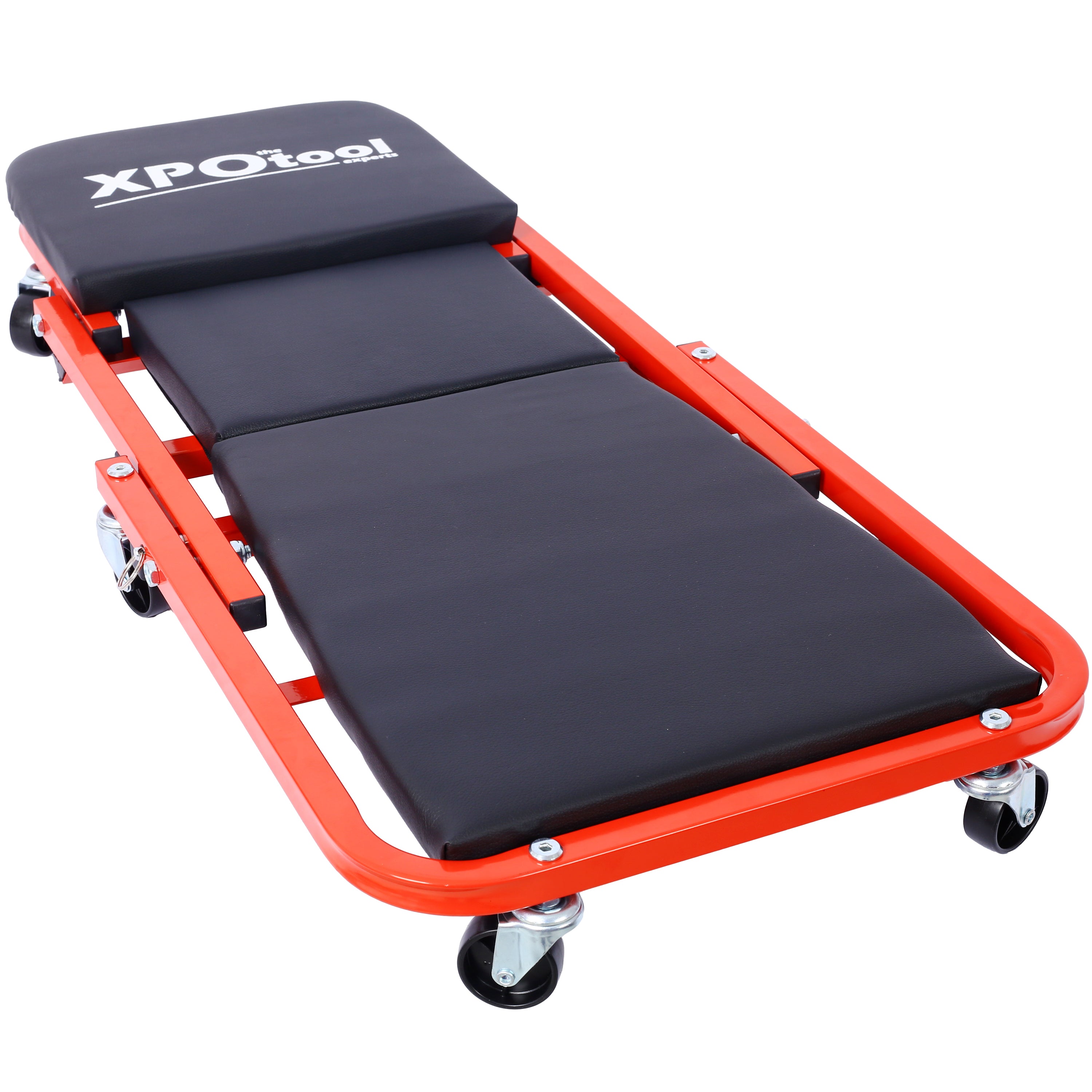 Built for the demanding shop environment, the unit features a rugged Red Steel frame for exceptional durability. The padded seating and lying areas are covered in easy-to-clean, comfortable Vinyl. Its Low Profile design gets you closer to the ground, while 6 durable wheels provide smooth, effortless maneuvering and 360-degree mobility under cars and trucks. This 2-in-1 tool is an essential piece of equipment for any professional or DIY mechanic.