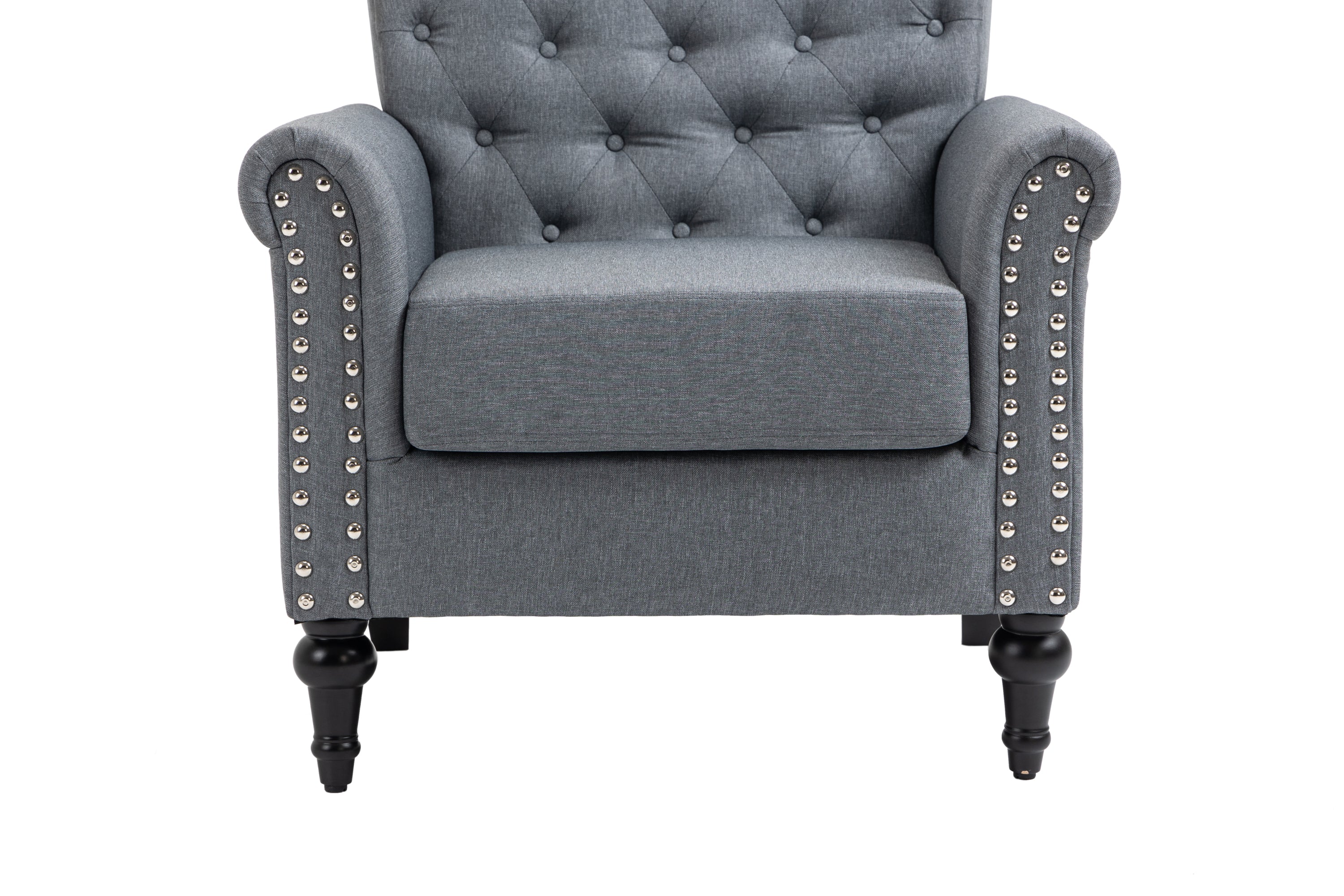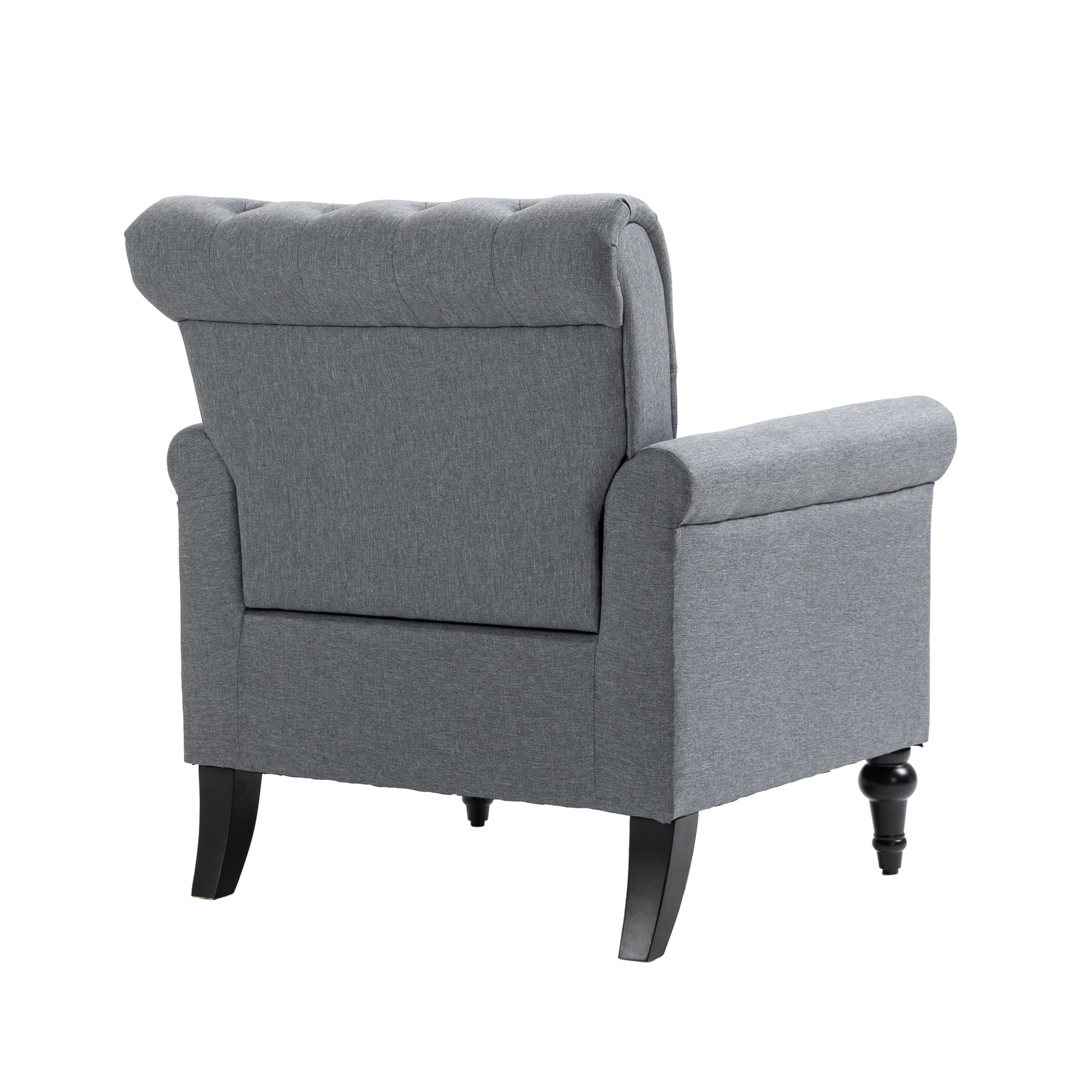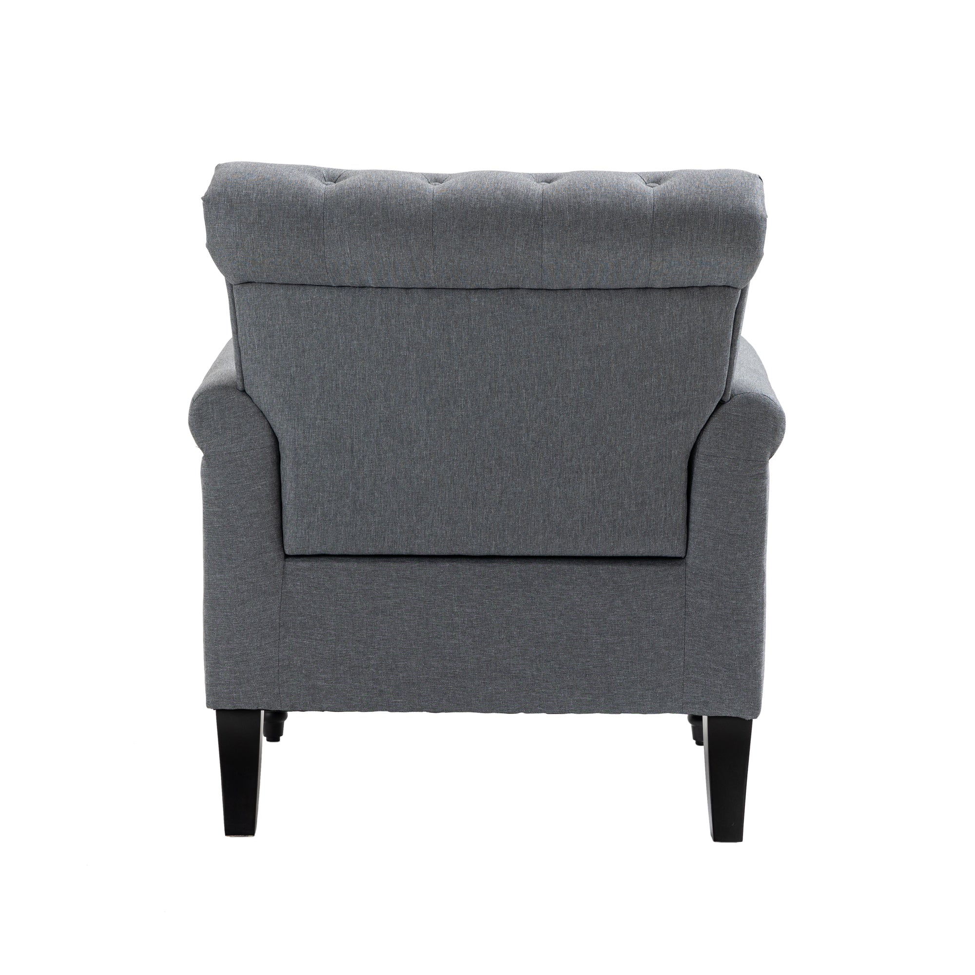 Mid-Century Modern Accent Chair, Linen Armchair w/Tufted Back/Wood Legs, Upholstered Lounge Arm Chair Single Sofa for Living Room Bedroom, Gray